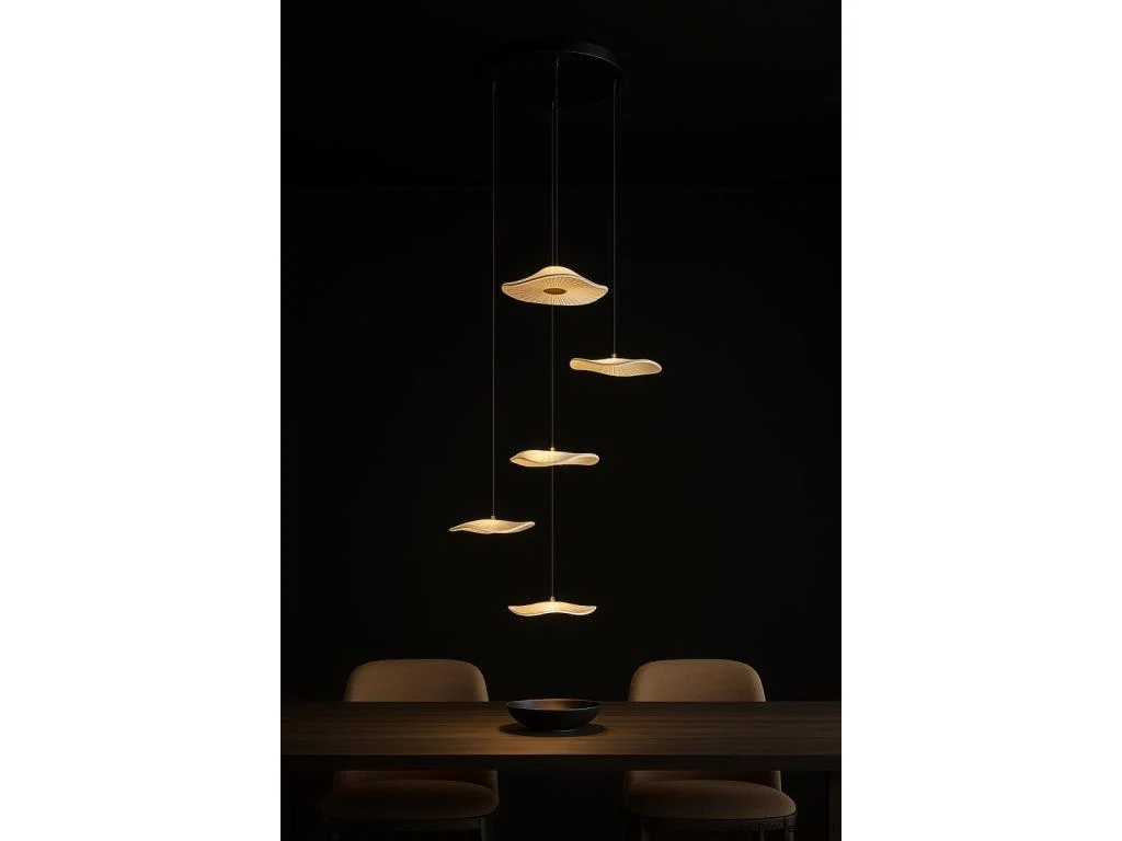 Hanglamp LED model B064/5 – Kleurtemperatuur 3000K (warm wit) – Diameter: 350 mm – Verstelbare hoogte – LItbron: geïntegreerde LED-strip – Spanning: 220-240V (50/60 Hz) – Inclusief montagemateriaal – Ontworpen voor binnenverlichting met een modern en elegant design – Perfect voor woonkamers, eetkamers, slaapkamers en kantoren – 3 jaar garantie.