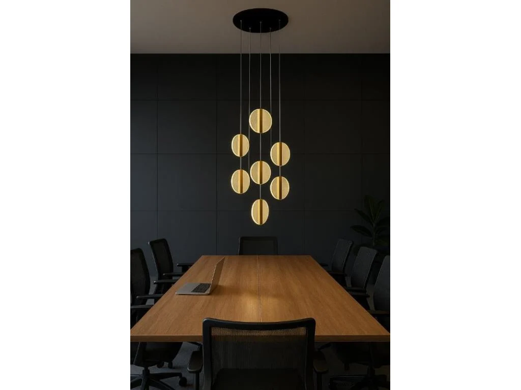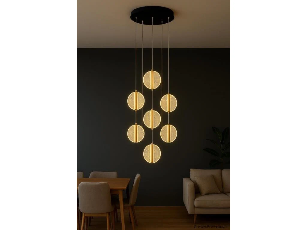 LED hanglamp model B067/7 – Kleurtemperatuur 3000K (warm wit) – Diameter: 400 mm – Hoogte instelbaarE – Lichtbron: geïntegreerde LED-strip – Spanning: 220-240V (50/60 Hz) – Inclusief montageset – Geschikt voor gebruik binnenshuis: woonkamers, slaapkamers, kantoren of woonruimtes – 3 jaar garantie.