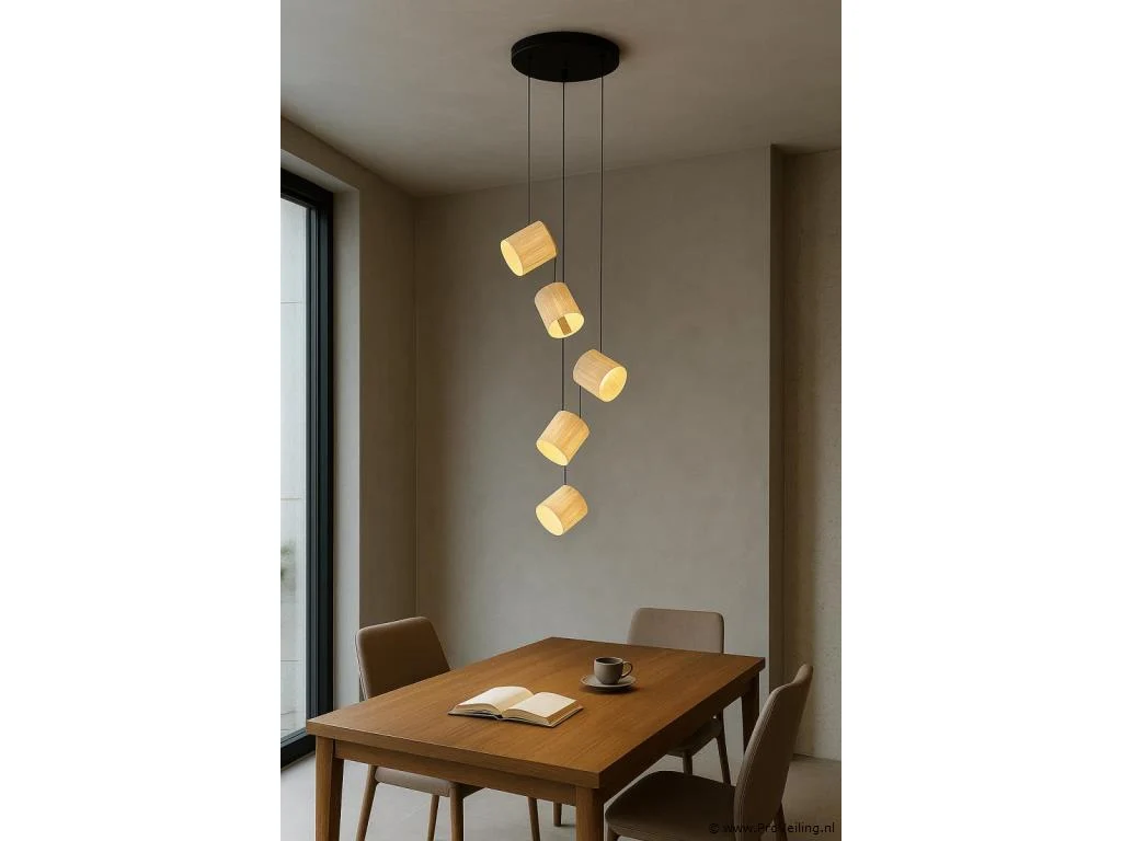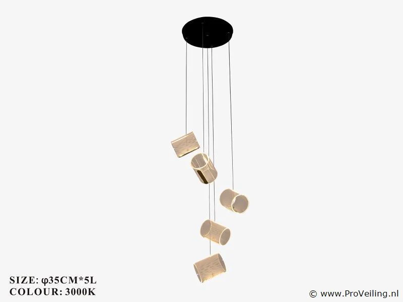 LED hanglamp model B068/5 – Kleurtemperatuur 3000K (warm wit) – Diameter: 350 mm – In hoogte verstelbaar – LichtbronEuse: geïntegreerde LED-strip – Spanning: 220-240V (50/60 Hz) – Inclusief montageset – Geschikt voor gebruik binnenshuis: woonkamers, slaapkamers, kantoren of woonruimtes – 3 jaar garantie.