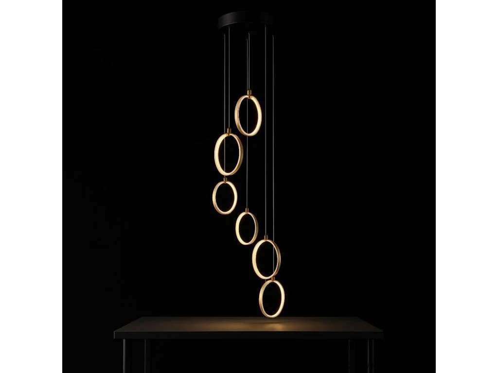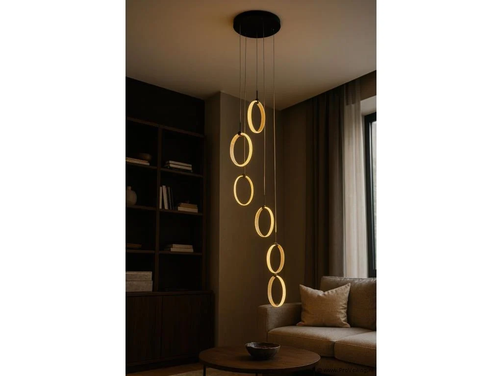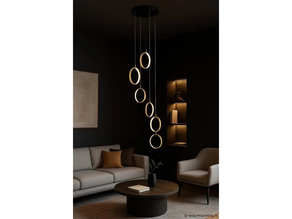 LED hanglamp model B069/6 – Kleurtemperatuur 3000K (warm wit) – Diameter: 350 mm – In hoogte verstelbaar – BronLicht: geïntegreerde LED-strip – Spanning: 220-240V (50/60 Hz) – Inclusief montageset – Ideaal voor gebruik binnenshuis: woonkamers, slaapkamers, kantoren of woonruimtes – 3 jaar garantie.