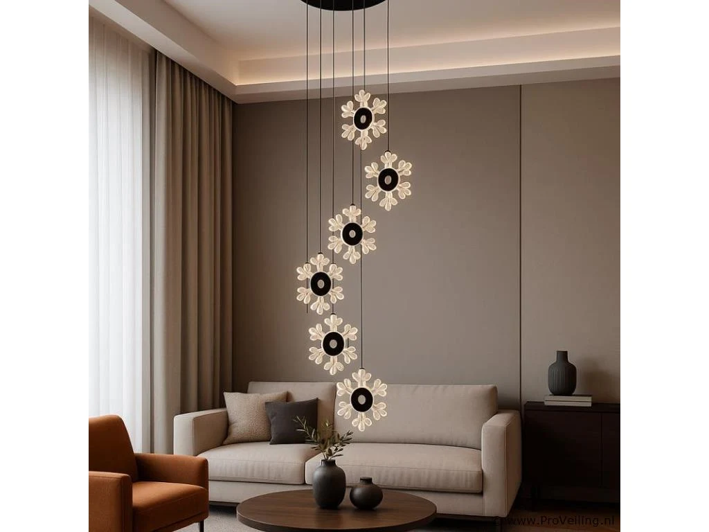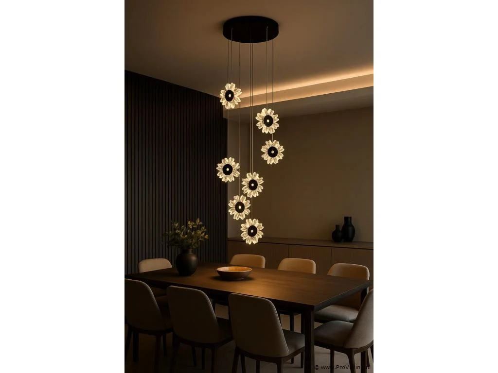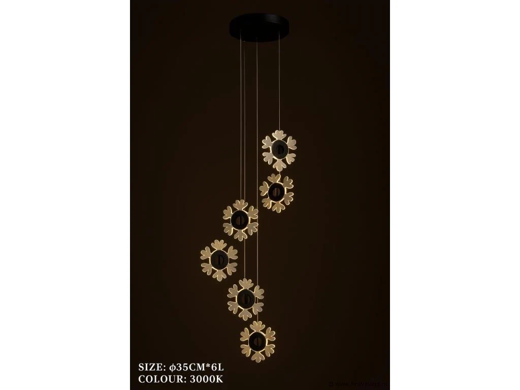 LED hanglamp model B074/6 – Kleurtemperatuur 3000K (warm wit) – Diameter: 350 mm – In hoogte verstelbaar – BronLicht: geïntegreerde LED-strip – Spanning: 220-240V (50/60 Hz) – Inclusief montageset – Ideale binnenverlichting voor woonkamers, eetkamers, slaapkamers of kantoren – 3 jaar garantie.