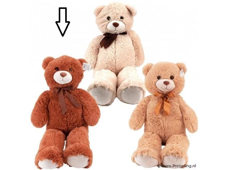 Teddybeer knuffel met strik XL 90 cm donkerbruin