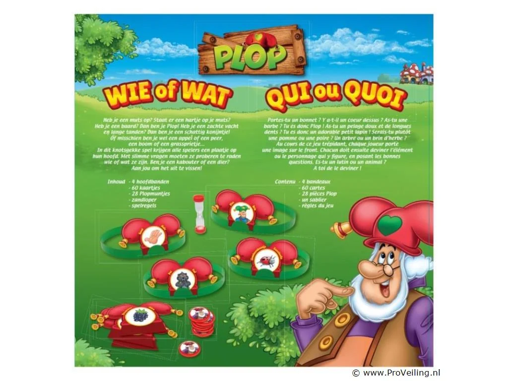 Leuke variant van wie is het -In dit knotsgekke spel krijgen alle spelers een plaatje op hun hoofd. Met slimme vragen moeten ze proberen te raden wie of wat ze zijn. Inhoud:4 hoofdbanden, 60 kaartjes, 28 plopmuntjes, zandloper en spelregels. Geschikt voor 2 tot 4 spelers vanaf 4 jaar. Speelduur van circa 15 minuten. Nederlandstalig/Franstalig.