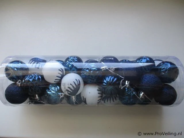 Set van 36kunstof kerstballen in de kleuren wit en blauw-elke kerstbal is circa 4cm