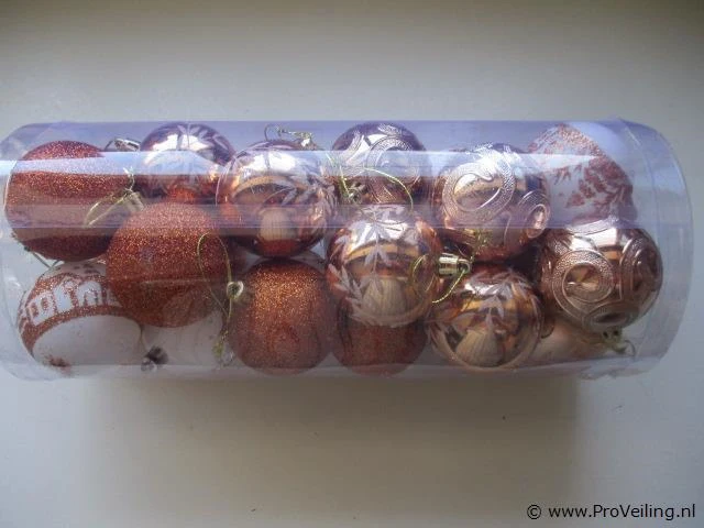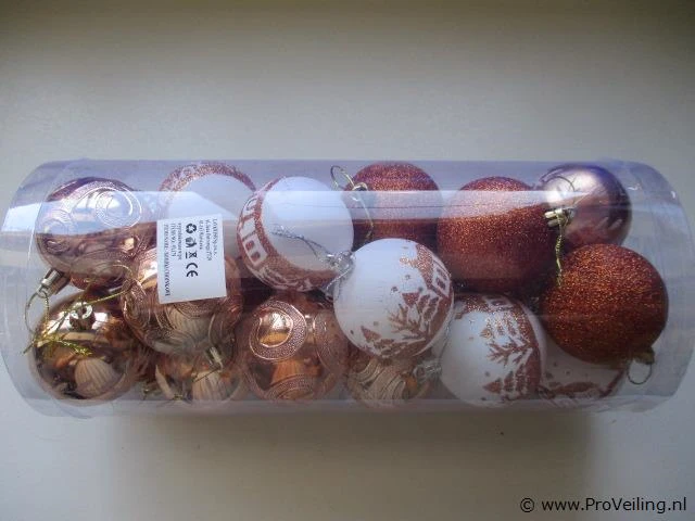 Set van 24 kunststof kerstballen in de kleuren rood en goud-elke kerstbal is circa 6cm