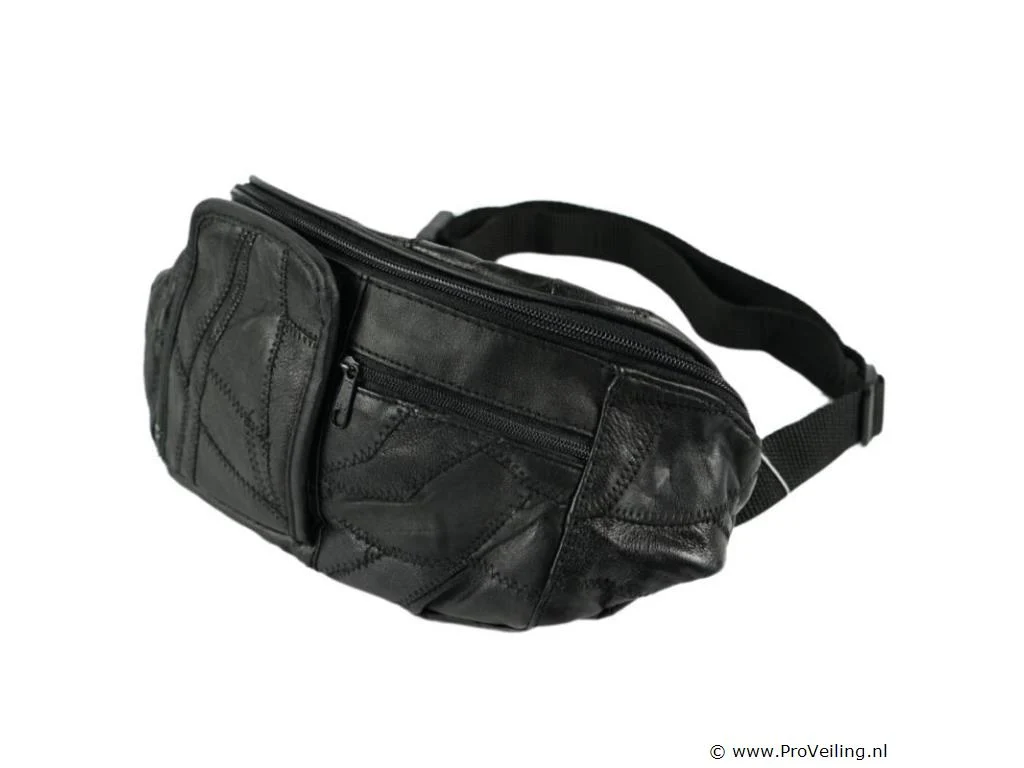 Heuptas 3 vakken leer 36 cm-Unisex- Stijlvolle leren heuptas met drie praktische vakken. Deze tas is ideaal voor het veilig opbergen van persoonlijke spullen tijdens reizen, festivals of dagelijks gebruik. De verstelbare heupband heeft een lengte van 85 tot 110 cm, waardoor de tas comfortabel te dragen is.