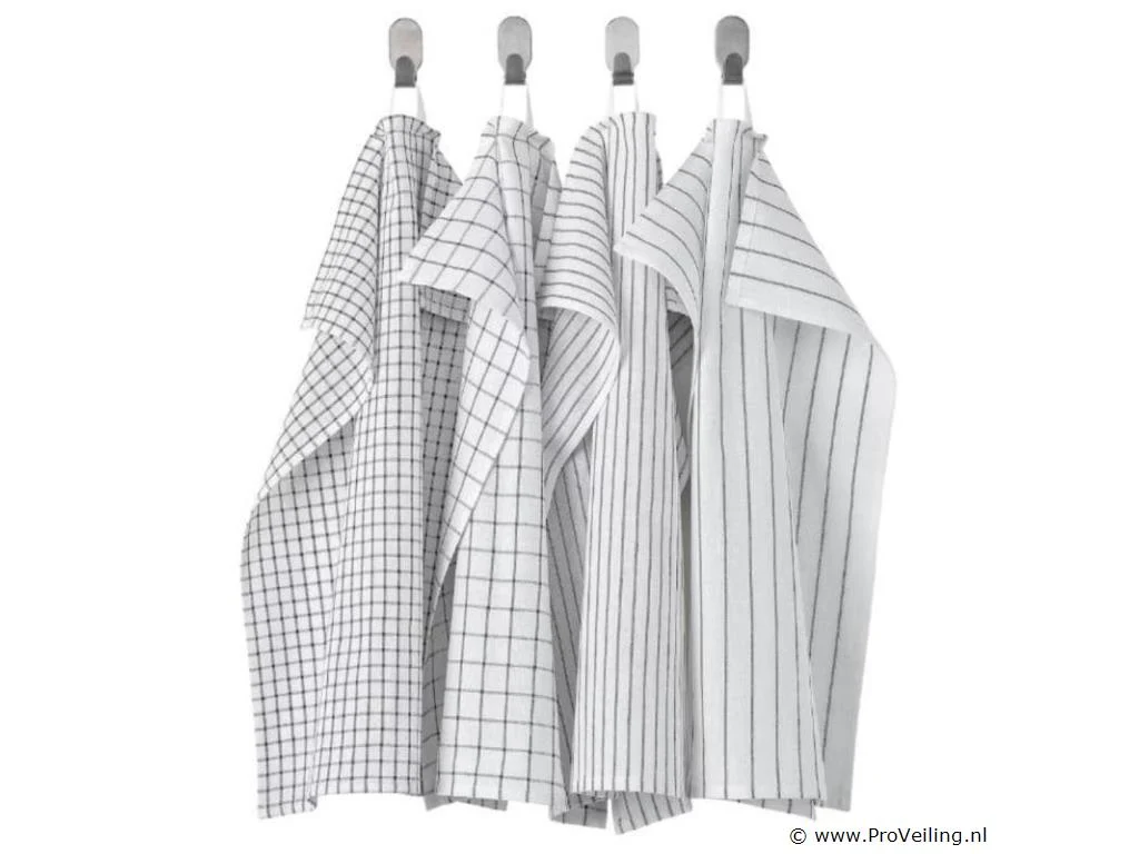 Deze set van vaatdoeken bestaat uit 9 stuks, elk met een afmeting van 45 x 60 cm. De vaatdoeken zijn gemaakt van 90% katoen en 10% viscose en Lyocell, wat zorgt voor een zachte en duurzame kwaliteit. De set is uitgevoerd in de kleuren wit en donkergrijs, ideaal voor elke keuken.