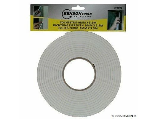 Tochtstrip zelfklevend rol 5,5 mtr. Rol met 5,5 meter zelfklevende tochtstrip met een breedte van 9 mm, voor het tochtvrij maken van ramen, kozijnen etc.