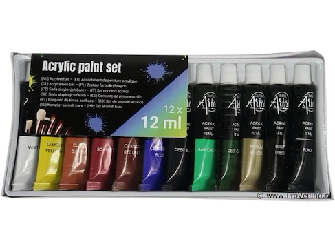 Duik in de wereld van kleur deze set met een breed scala aan acrylverf kleuren, ideaal voor zowel de beginnende als de ervaren kunstenaar. De 12 verschillende kleuren, elk in een 12 ml tube, bieden een breed scala aan mogelijkheden voor het creëren van prachtige kunstwerken. Of je nu graag schildert op canvas, linnen schilderdoeken of schildersboard, deze acrylverf past perfect bij jouw kunstprojecten.