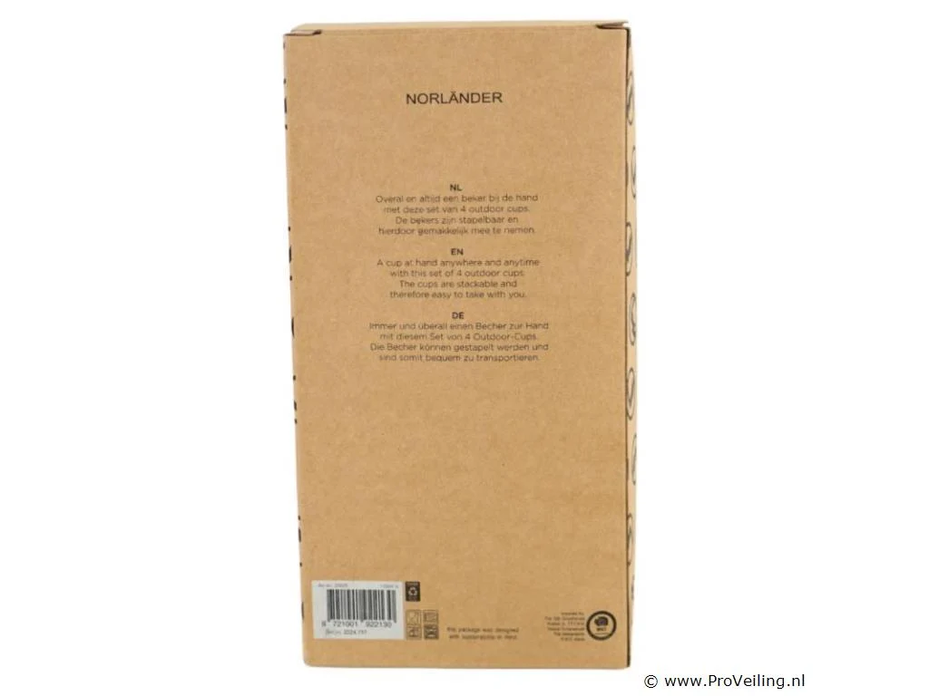 Set van 4 kunststof bekers van Norlander in verschillende vrolijke kleuren. Inhoud 300 ml. Vaatwasser- en magnetronbestendig. Niet geschikt voor gebruik in de oven. Ideaal voor kamperen, picknicks of buitengebruik.