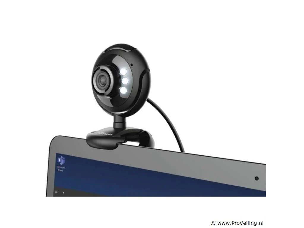 Spotlight Pro webcam van Trust. De webcam is zwart van kleur en beschikt over 6 dimbare LED lampjes. De camera heeft een 640 x 480 resolutie en een ingebouwde microfoon, De webcam kun je bovenop je laptop of computerscherm klemmen, maar kan ook gewoon op een vlakke ondergrond worden gezet. De kabel heeft een lengte van 170 cm en heeft een USB aansluiting. Werkt op Windows, Mac en OS. Systeem 10, 8 en 7.USB-poort.Mac OS X (10.15 of nieuwer)