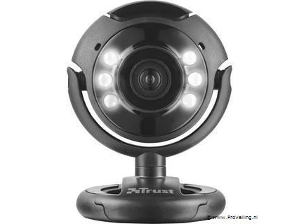 Spotlight Pro webcam van Trust. De webcam is zwart van kleur en beschikt over 6 dimbare LED lampjes. De camera heeft een 640 x 480 resolutie en een ingebouwde microfoon, De webcam kun je bovenop je laptop of computerscherm klemmen, maar kan ook gewoon op een vlakke ondergrond worden gezet. De kabel heeft een lengte van 170 cm en heeft een USB aansluiting. Werkt op Windows, Mac en OS. Systeem 10, 8 en 7.USB-poort.Mac OS X (10.15 of nieuwer)