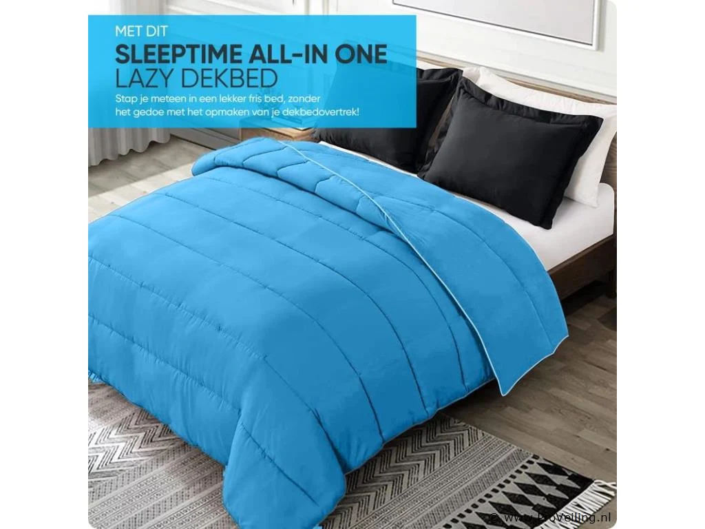Sleeptime 2 in 1 Omkeerbare Dekbed - Dekbed zonder Overtrek - 240x200 - Blauw, Met dit Sleeptime All-in one Lazy dekbed stap je direct in een lekker fris bed zonder het gedoe van een overtrek dat eerst nog om het dekbed moet. Dit dekbed heeft namelijk een geïntegreerd overtrek dat áltijd goed zit.