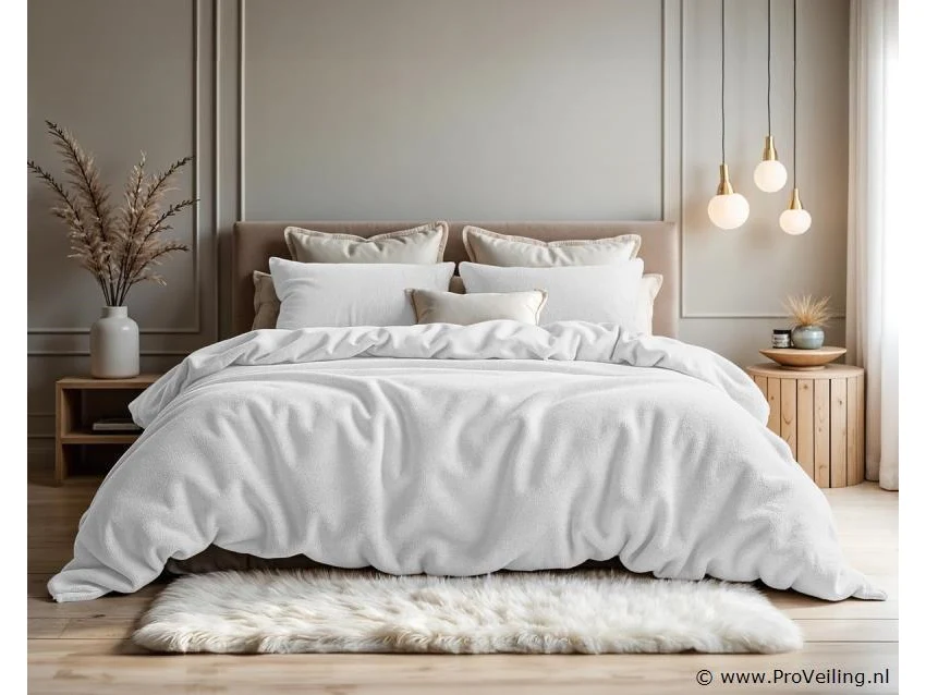 Teddy katoen wit- Ervaar ultiem comfort met ons teddy dekbedovertrek+ 2 kussenslopen, vervaardigd uit hoogwaardig 100% Teddy Rib polyester met een weelderige dichtheid van 260 gsm. Deze zachte teddy kwaliteit biedt een ongeëvenaard gevoel van luxe en warmte.