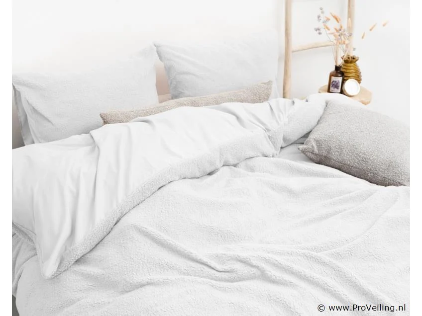 Teddy katoen wit- Ervaar ultiem comfort met ons teddy dekbedovertrek+ 2 kussenslopen, vervaardigd uit hoogwaardig 100% Teddy Rib polyester met een weelderige dichtheid van 260 gsm. Deze zachte teddy kwaliteit biedt een ongeëvenaard gevoel van luxe en warmte.