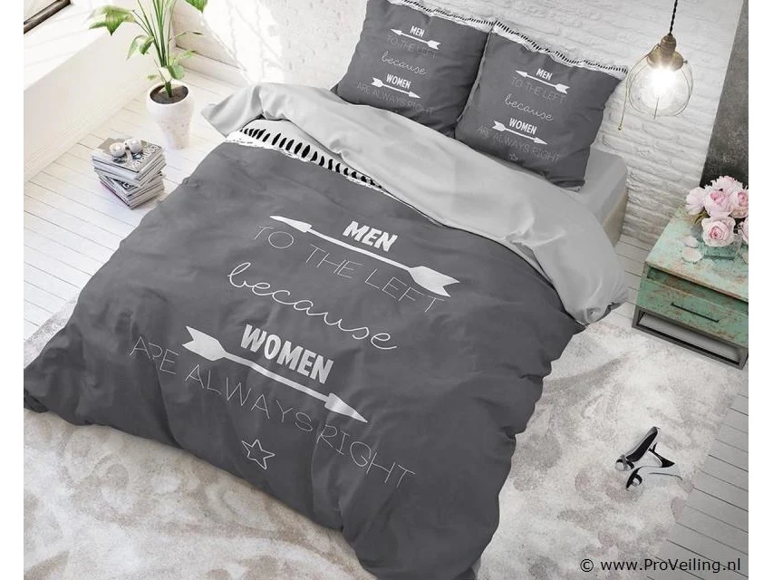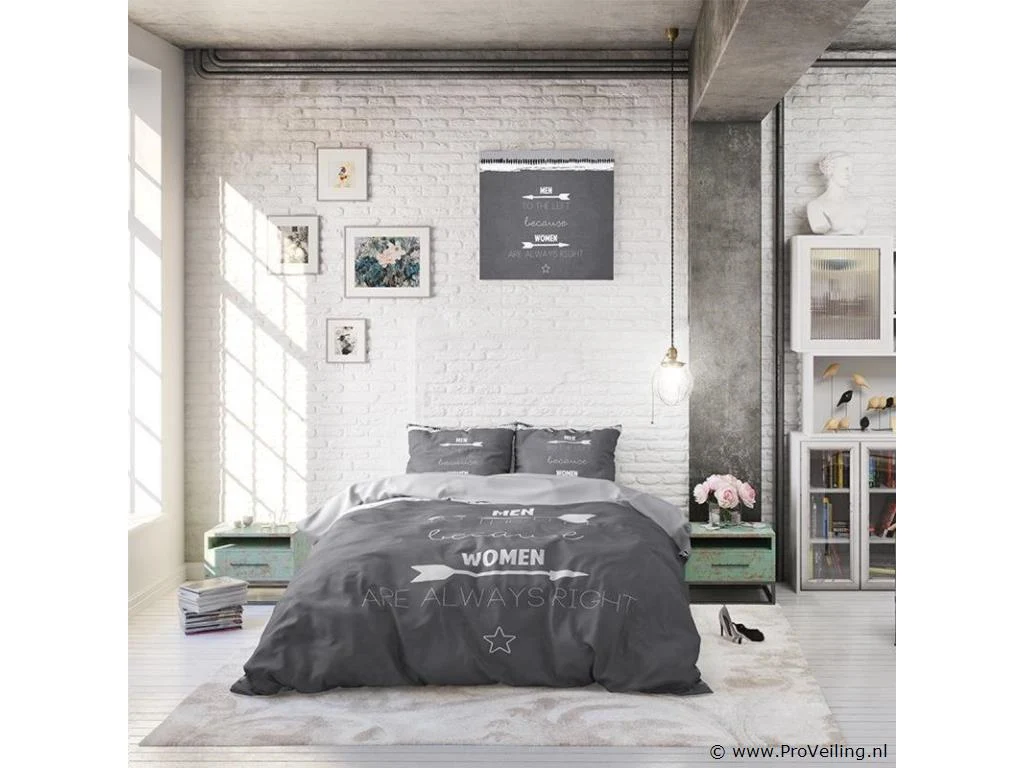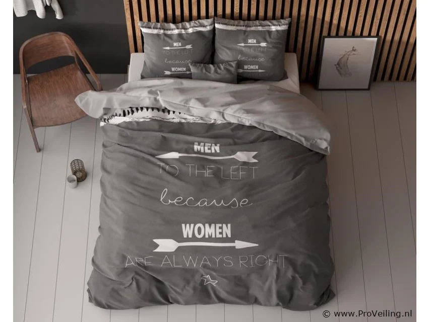 Women Always Right Antraciet ultiem slaapcomfort met ons hoogwaardige dekbedovertrek, ontworpen om zowel stijl als functionaliteit in uw slaapkamer te brengen.100%katoen inclusief 2 kussenslopen 60x70cm