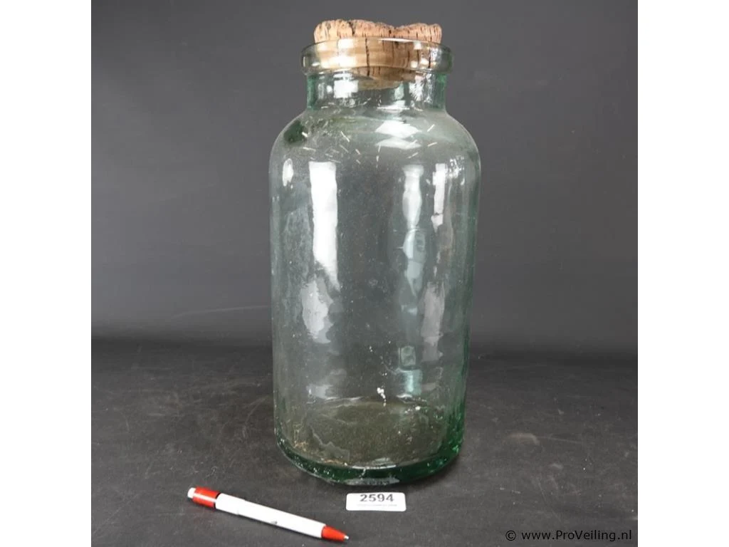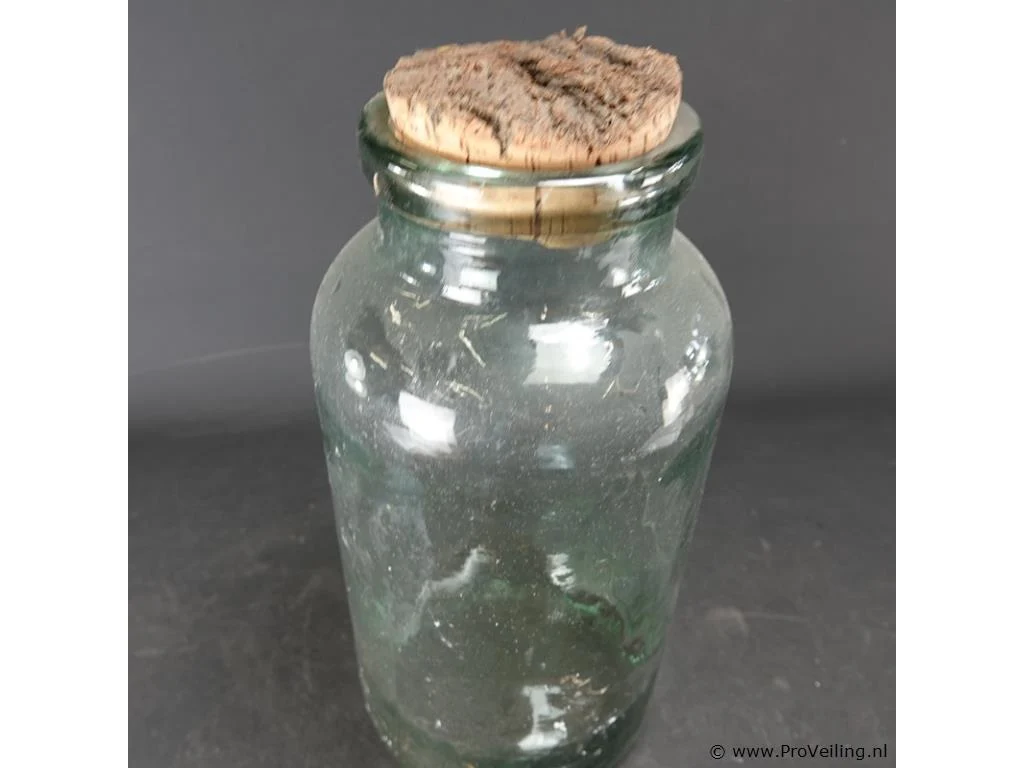 Antieke dikglazen pot met kurk