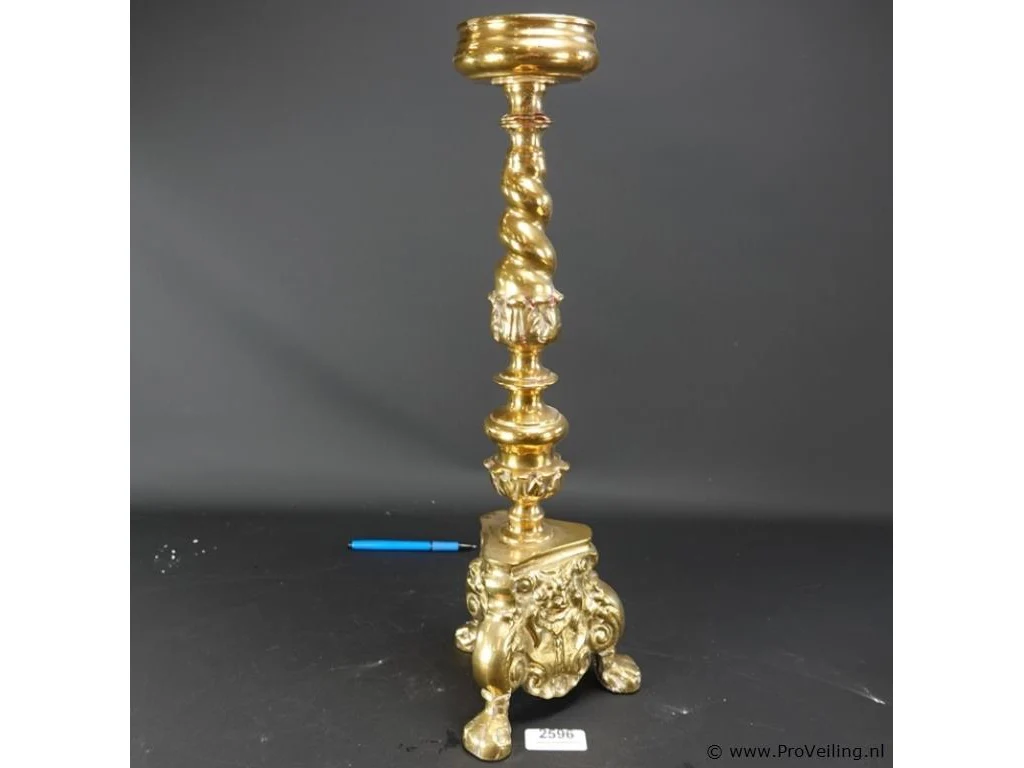 Antieke grote zware koper/bronzen kerkkandelaar
