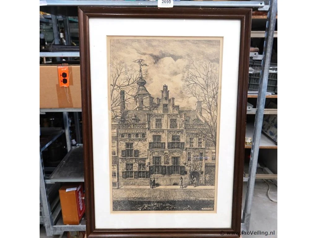 In passe-partout, achter glas en in houten lijst. H75cm/B50cm/3363Gr. Lees a.u.b. ook de extra veilinginformatie voor deze veiling. G-E-E-N transport of bezorging door Proveiling mogelijk. Eventueel transport of bezorging alleen door u zelf te regelen via b.v. www.brenger.nl .