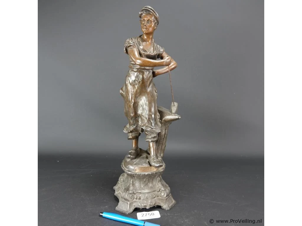 Antiek frans faux brons beeld "le forgeron" of "de smid"