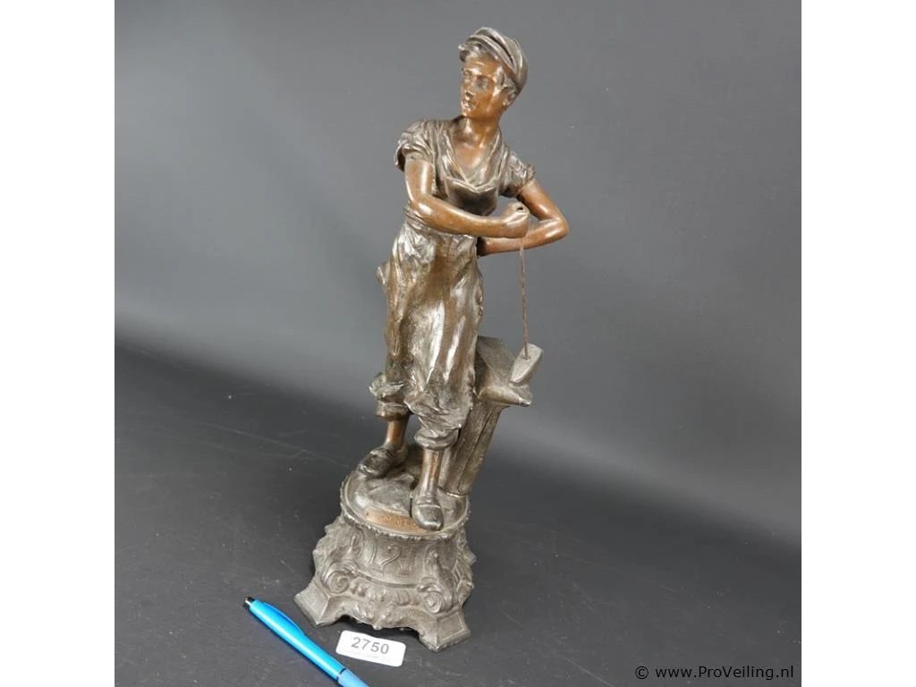 Antiek Frans faux brons beeld "Le Forgeron" of "De Smid". H42cm/2005Gr. Verwachte opbrengst € 50,00 - € 100,00. Lees a.u.b. ook de extra veilinginformatie voor deze veiling!.