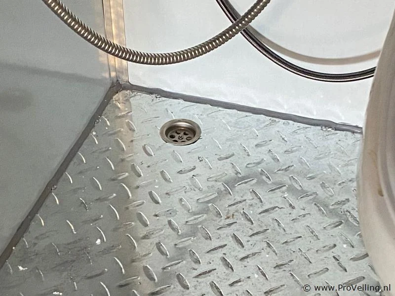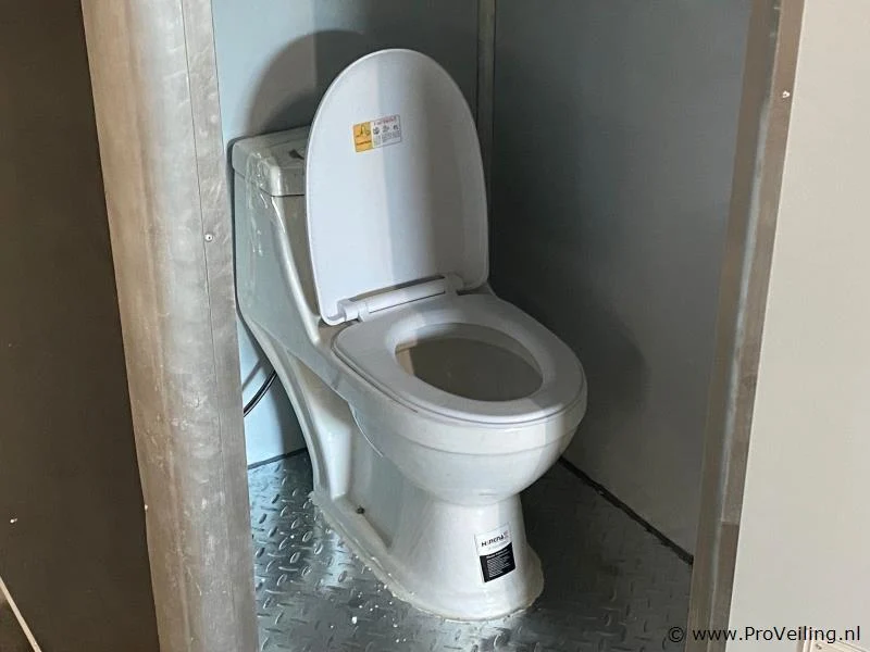 1170x1170x2300 mm; Equipped with 1 toilet; 1 sink; 1 shower connections; Lighting; 230V connection; Fan; 2 keys; Unused