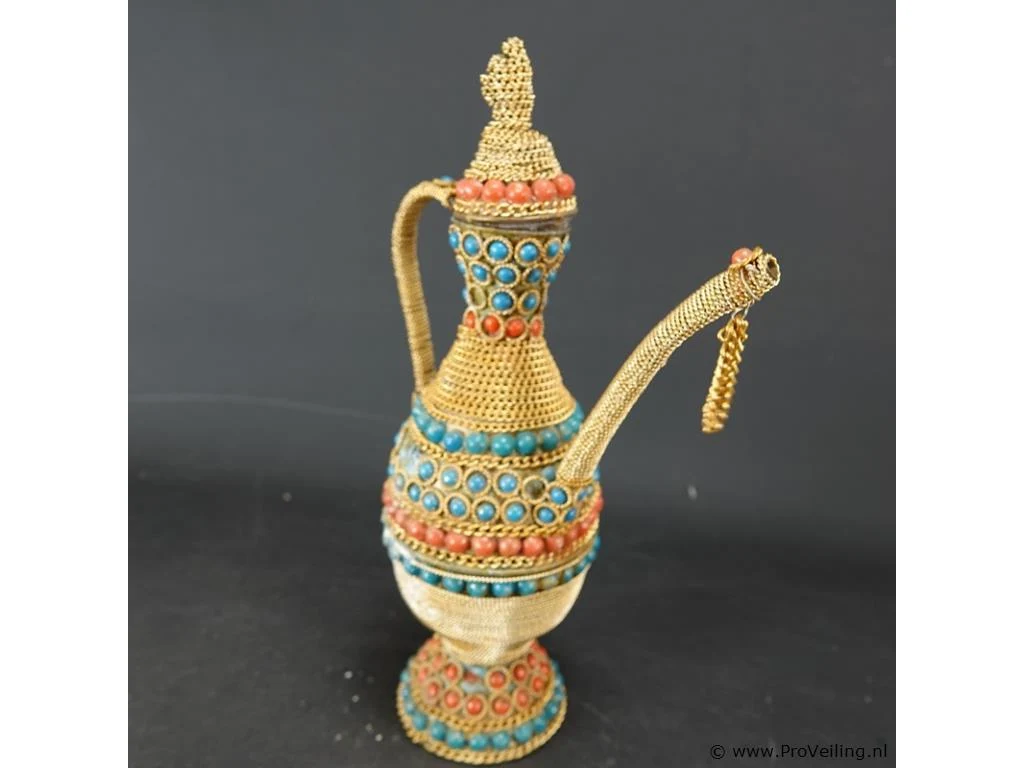Oude messing marokkaanse kan gelardeerd met edelstenen