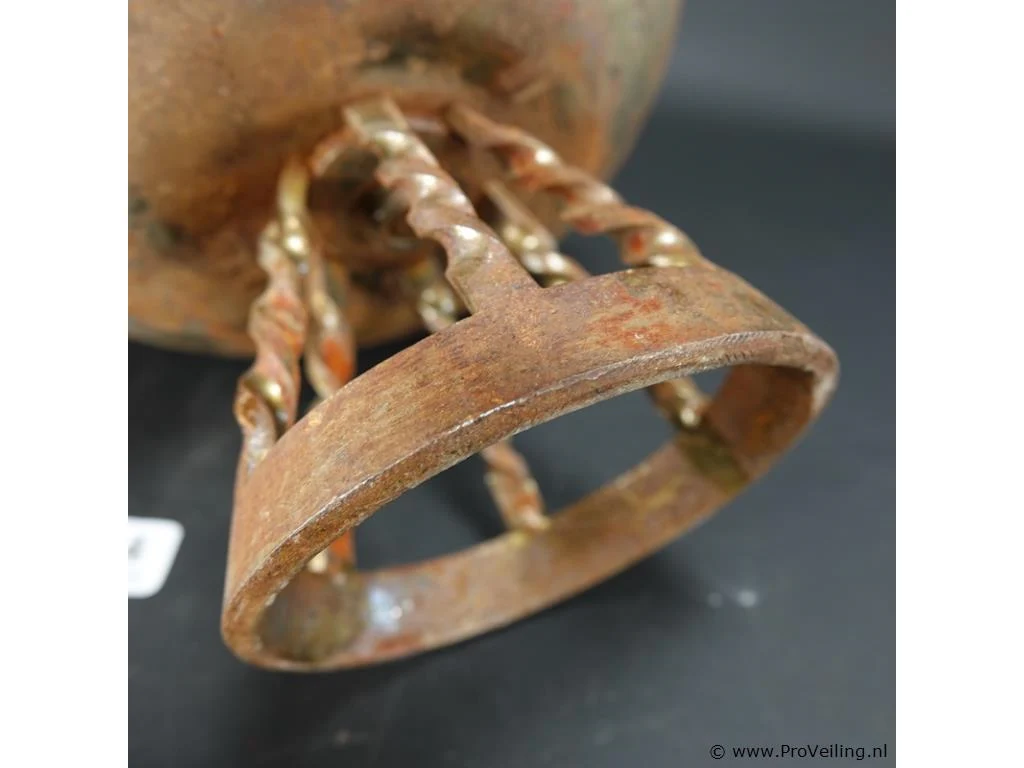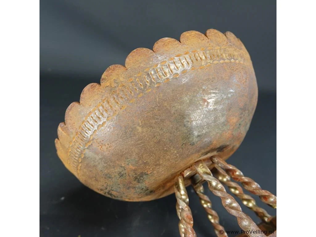 Antieke ijzeren klankschaal (mooi geluid) op stand