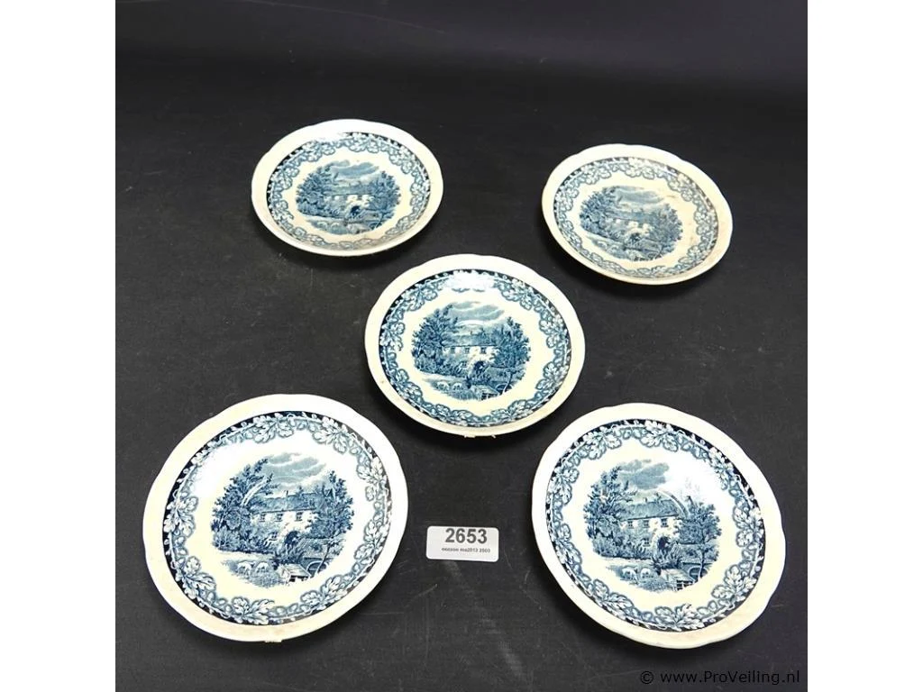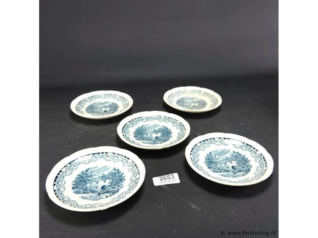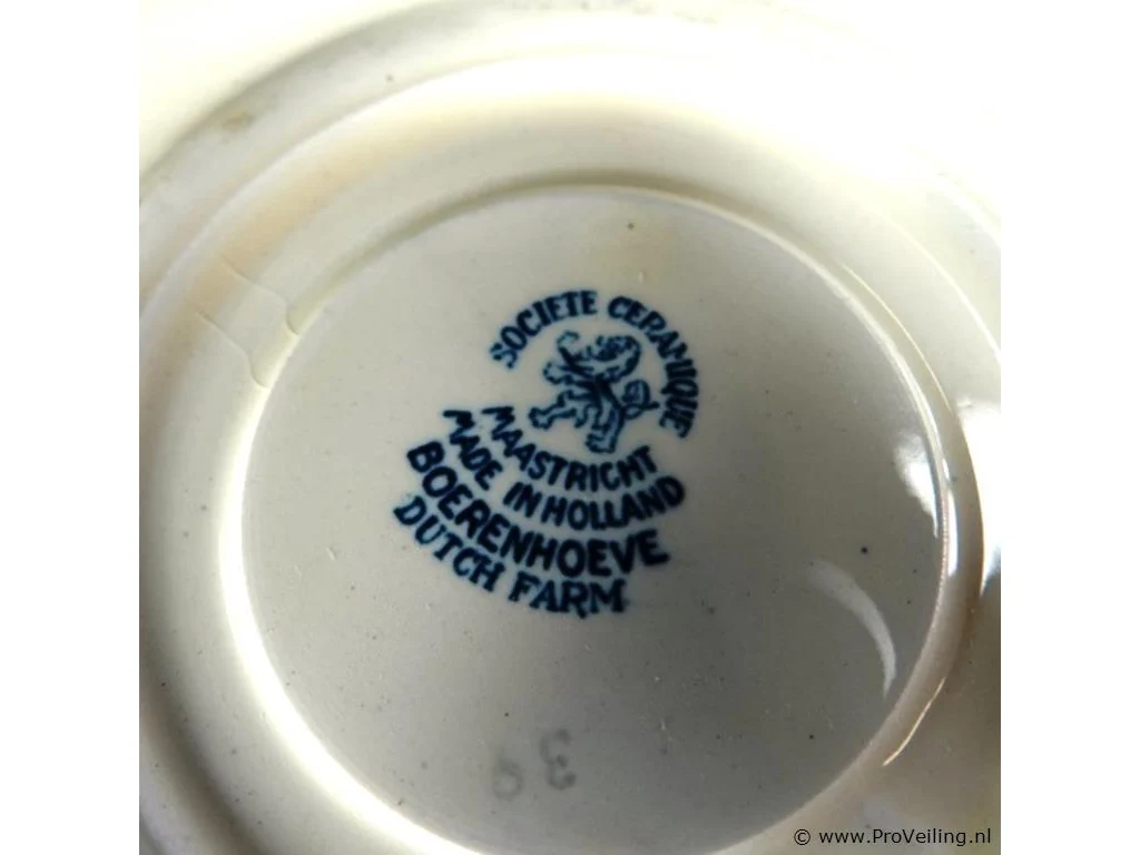 5 Societé Ceramique Maastricht schotels. Decor "Boerenhoeve". Aan onderzijde gemerkt. D16cm/954Gr. Dit betreft een tijdens transport kwetsbaar product! Uw transportrisico voor deze kavel is zeker in combinatie met andere kavels hoog. Lees daarom a.u.b. ook de extra veilinginformatie voor deze veiling!.
