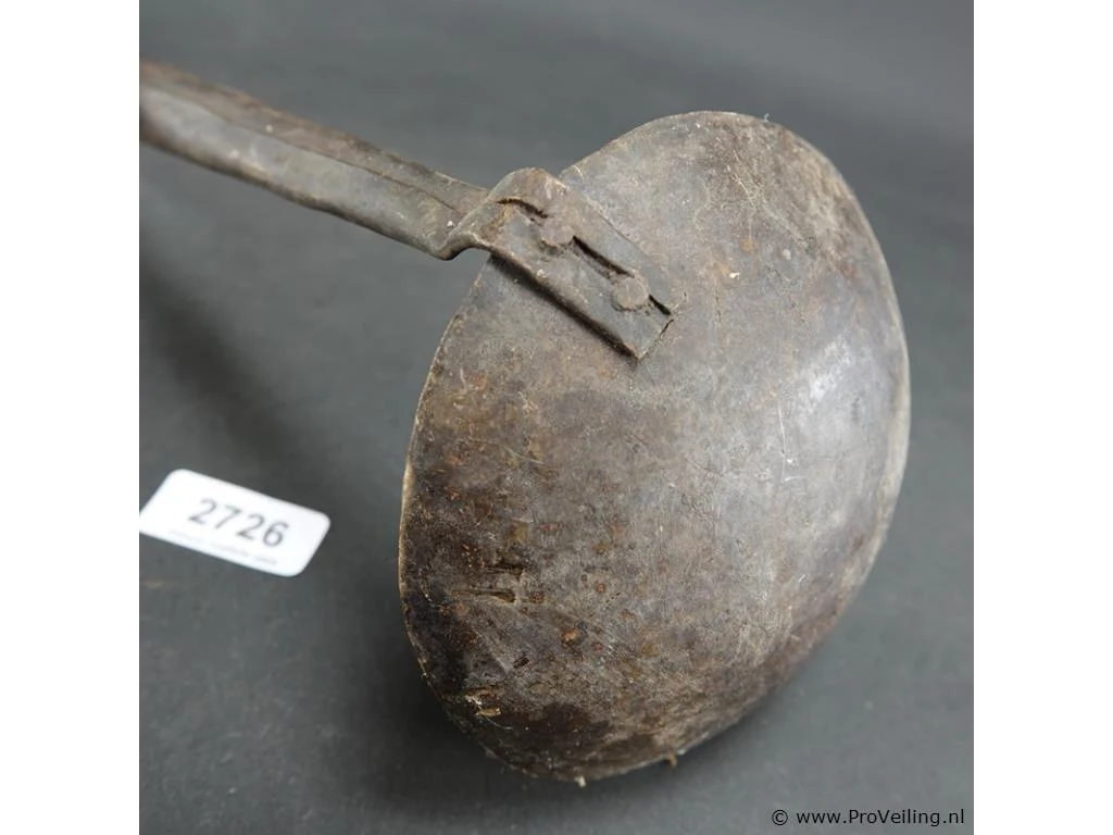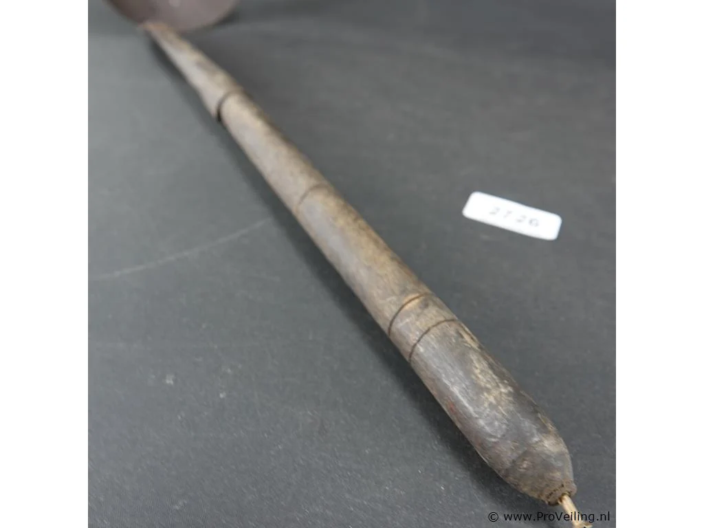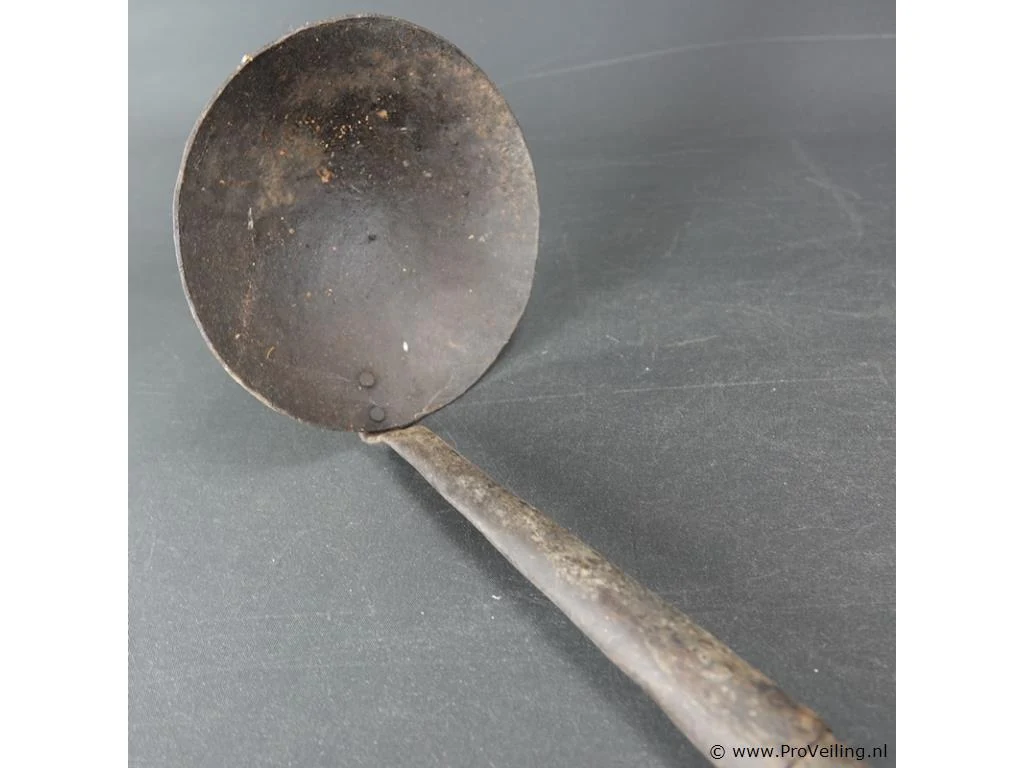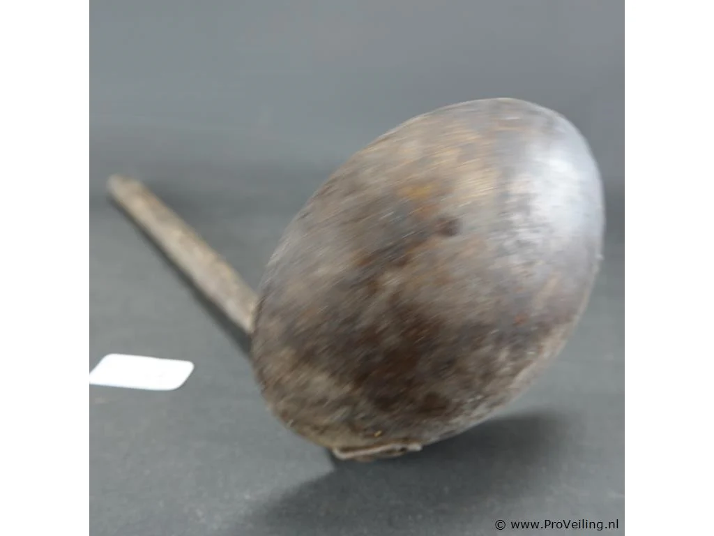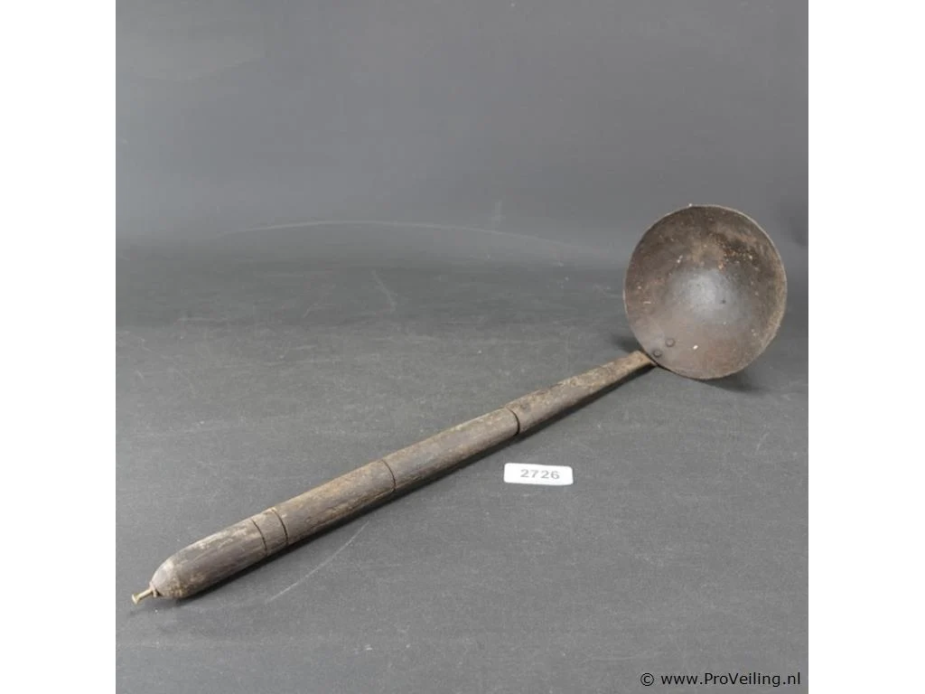 Antieke ijzeren lepel met houten steel