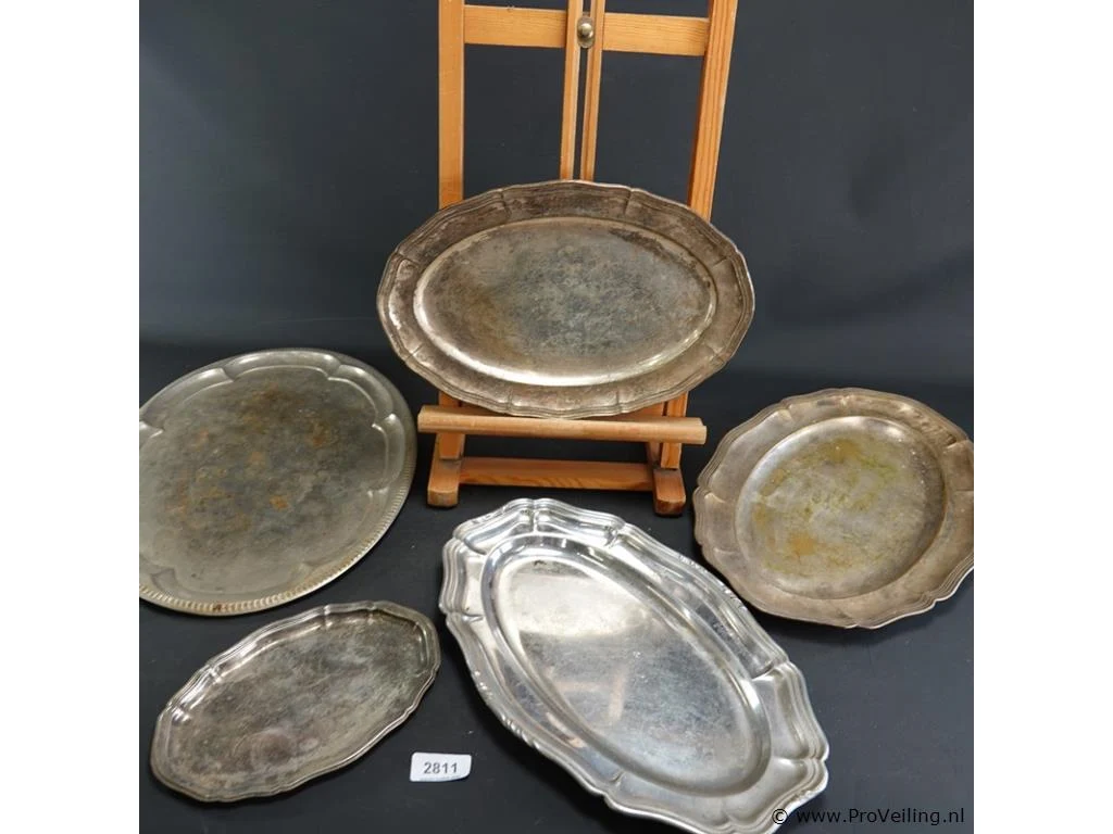 5 verzilverde schalen