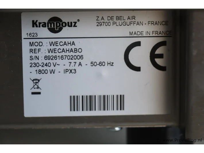Wafelijzer: merk Krampouz - Wafel en Co Easy Clean System; model Wechaha; afmetingen ca. 44x26x22cm.