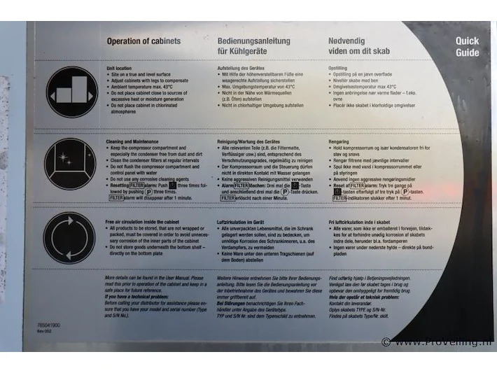 Horeca koelkast: merk Gram; afmetingen ca. 140x84x208cm.