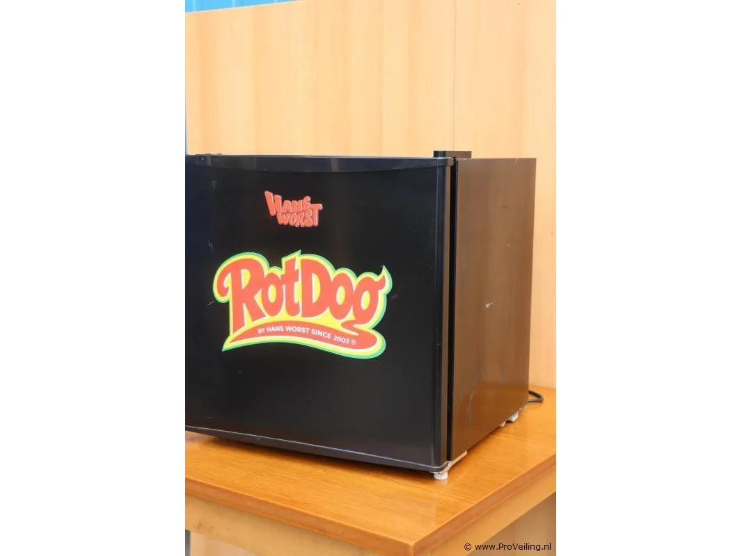 Koelkast met opdruk "RotDog by Hans Worst"; zie afbeeldingen.