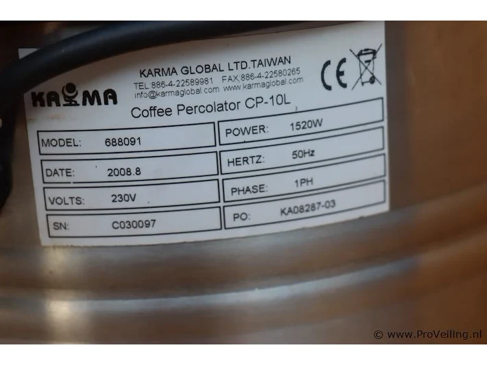 Percolator: merk Caterchef; model 688091; inhoud: 10ltr; bouwjaar: 2008; zie afbeeldingen.