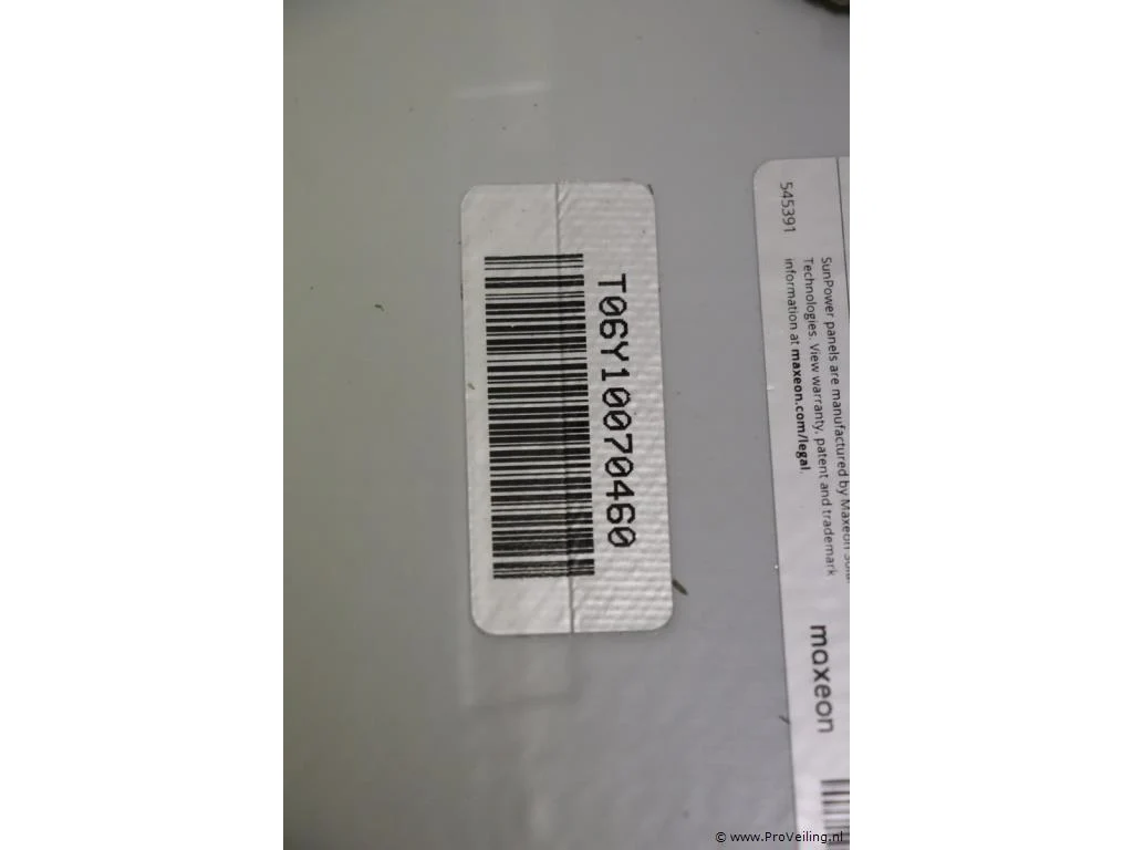 Zonnepanelen: merk Sunpower; model SPR-MAX6-435-E4-AC; afmetingen ca. 183x103x4cm; aantal ca. 15 stuks.