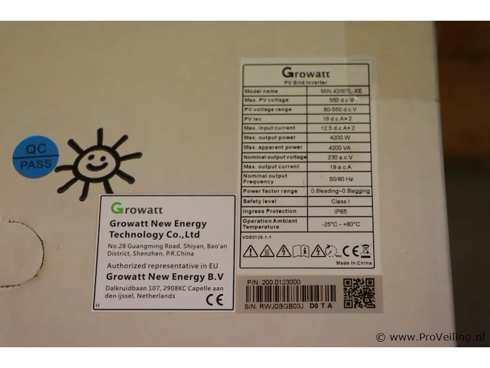 PV Grid inverter voor zonnepanelen: merk Growatt; model MIN 4200TL-XE; nieuw in doos. Winkelverkoopprijs ca. € 609,-. De Growatt MIN 4.200 TL-XE is een krachtige en betrouwbare omvormer die geschikt is voor zowel residentiële als commerciële toepassingen. Het apparaat is ontworpen voor maximale energie-efficiëntie en zorgt voor een consistente stroomproductie, zelfs onder minder ideale omstandigheden. Met de mogelijkheid voor zowel 1-fase als 3-fase systemen, biedt het de flexibiliteit die nodig is voor een breed scala aan installaties. De Growatt MIN 4.200 TL-XE beschikt over een compact ontwerp en biedt geavanceerde monitoringmogelijkheden om de prestaties van het systeem te volgen. Het systeem is eenvoudig te installeren en biedt langdurige betrouwbaarheid, wat het een uitstekende keuze maakt voor iedereen die op zoek is naar een efficiënte zonne-energieoplossing.