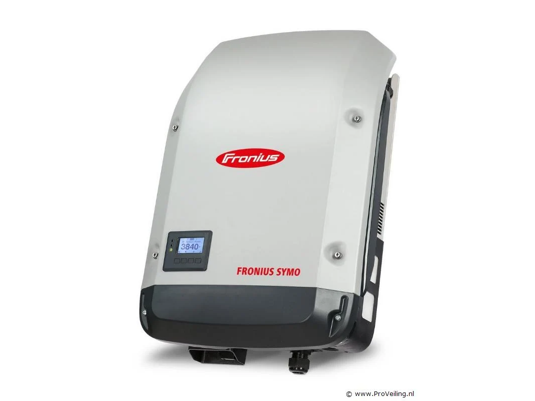 Inverter/omvormer: merk Fronius; model Fronius Symo 8.2-3-M; Wlan/Lan/Webserver; part. No.: 4,210,039; nieuw in doos; winkelverkoopprijs ca. € 2103,-. Met een vermogensbereik van 3,0 tot 20 KW vervolledigt de Symo omvormerfamilie van Fronius de reeks omvormers die zijn uitgerust met SnapInverter-technologie. Dit type eenfasige transformatorloze apparatuur is vooral gericht op het particuliere woningsegment. De SnapInverter-technologie maakt installatie en onderhoud van deze apparatuur eenvoudiger dan ooit. De standaard communicatiefuncties, waaronder WLAN, energiebeheerfuncties, talrijke interfaces en nog veel meer, maken van de Fronius Primo netomvormer een zeer gebruiksvriendelijk apparaat. Snap omvormer - is een gestandaardiseerd klemsysteem, waardoor installatie en onderhoud eenvoudiger zijn dan ooit. Een speciaal kenmerk van deze apparatuur is dat het aansluitgedeelte gescheiden is van het vermogensgedeelte van de omvormer, omdat dit twee aparte, afzonderlijk geïnstalleerde modules zijn. De omvormer (de powermodule) wordt eenvoudigweg vastgezet in de beugel die op de steun is geklemd. Onderhoud is dus een eenvoudig proces, want het is niet nodig om de hele omvormer te demonteren, het aansluitgedeelte blijft vastzitten. Datacommunicatie geïntegreerd Fronius - is de eerste fabrikant die zijn omvormers uitrust met een datacommunicatiepakket, bestaande uit geïntegreerde datalogging, WLAN, Ethernet, energiebeheer, webserver en een reeks interfaces voor gebruikersinteractie. De omvormer kan op het internet worden aangesloten via een netwerkkabel of WLAN. Superflex ontwerp - is een ingenieuze combinatie van technische kenmerken - twee MPP trackers, hoge bedrijfsspanning, breed ingangsspanningsbereik. Deze technische eigenschappen maken het mogelijk om uitstekende prestaties te leveren gedurende een zonnige dag, maar ook in configuraties met verschillende dakoriëntaties. Dynamisch puntbeheer - is een algoritme voor de MPP-tracker die automatisch het optimale werkpunt identificeert. Het belangrijkste kenmerk is dat het globale maximale vermogenspunt identificeert, zelfs bij minder zonnig weer, voor een hogere efficiëntie van het hele PV-systeem. Opties voor Smart Grid - Alle Fronius omvormers zijn uitgerust om te voldoen aan de eisen van de elektriciteitsnetten van de toekomst. Een aantal SMART-functies, waaronder een aantal om de injectie van reactief en effectief vermogen in het net te regelen en te bewaken, zijn al in de omvormer ingebouwd. Deze SMART-functies zijn bedoeld om het net tijdens bedrijf te stabiliseren en ongewenste onderbrekingen in de injectiefase te voorkomen. Waar injectielimieten bestaan, kunnen Fronius omvormers bovendien interactieve injectieregeling bieden die rekening houdt met het eigen verbruik. Al deze Smart Grid Ready opties bieden de zekerheid van een langetermijninvestering. Nul netwerkinjectie - Een groot aantal energiebeheerders in verschillende landen stelt de installatie van een fotovoltaïsch systeem afhankelijk van het bestaan van een energiedrempel die in het nationale energiesysteem wordt geïnjecteerd. De omvormer geeft voorrang aan de levering aan huishoudelijke verbruikers en vermindert de hoeveelheid geïnjecteerde energie tot de limiet die door de energiebeheerder is opgelegd. Deze drempel kan worden geconfigureerd via de webinterface van de omvormer.