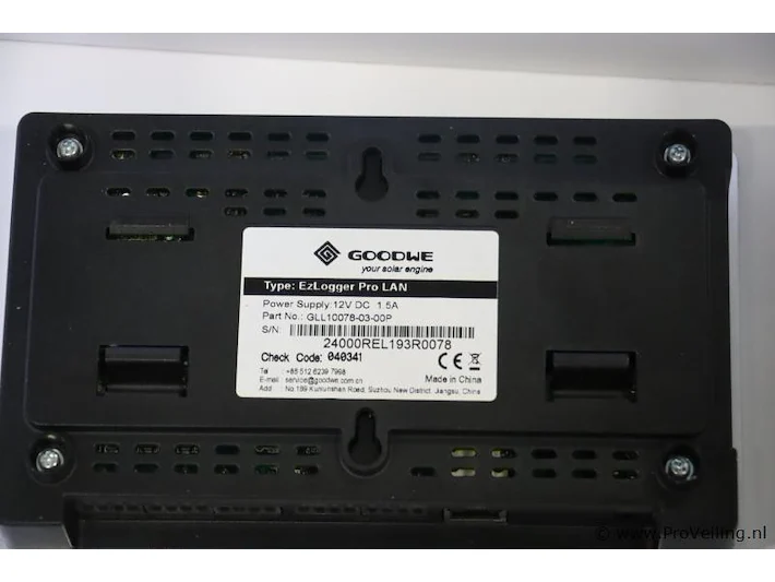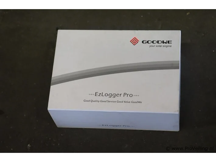 EzLogger Pro: merk Goodwe; type EZLogger Pro LAN; nieuw in doos; winkelverkoopprijs ca. € 175,-. Wordt met de omvormer verbonden via RS485, maakt verbinding met de pc via ethernet en verzendt gegevens naar de EzExplorer-bewakingssoftware van GoodWe en de GoodWe-portal.