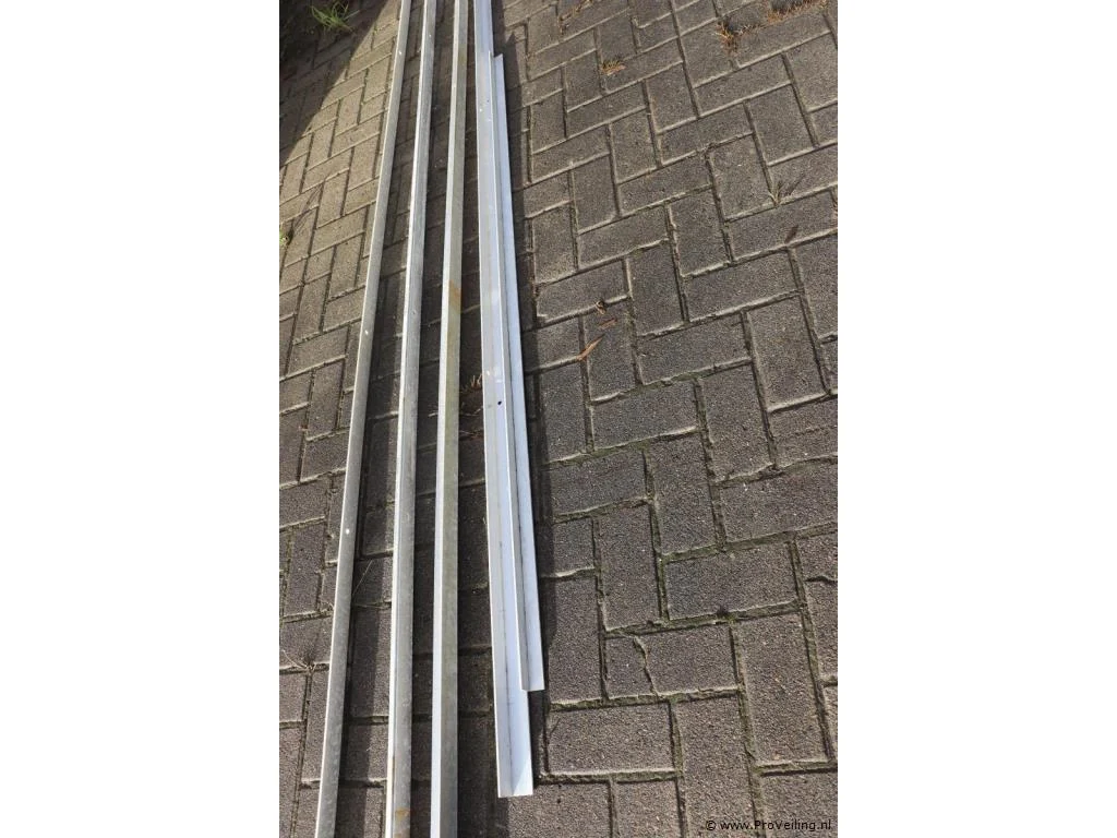 Partij profielstrippen; diverse maten o.a. 5x5x470cm (1x), 4x4x470cm (3 stuks), 4x4x270cm (1x) & 3x3x172cm (1x); zie afbeeldingen.