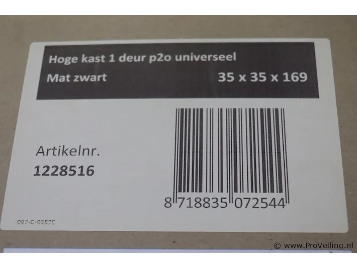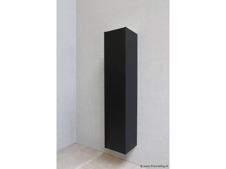 Hoge badkamerkast: merk Proline; 1 deur push to open; kleur mat zwart; afmetingen ca. 35x35x169cm; nieuw in doos; winkelverkoopprijs ca. € 384,-.
