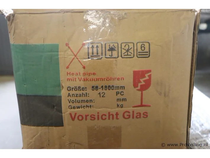 Vacuüm/heatpipe zonnecollector met 12 buizen; 58-1800mm; nieuw in doos; winkelverkoopprijs ca. € 737,-.
