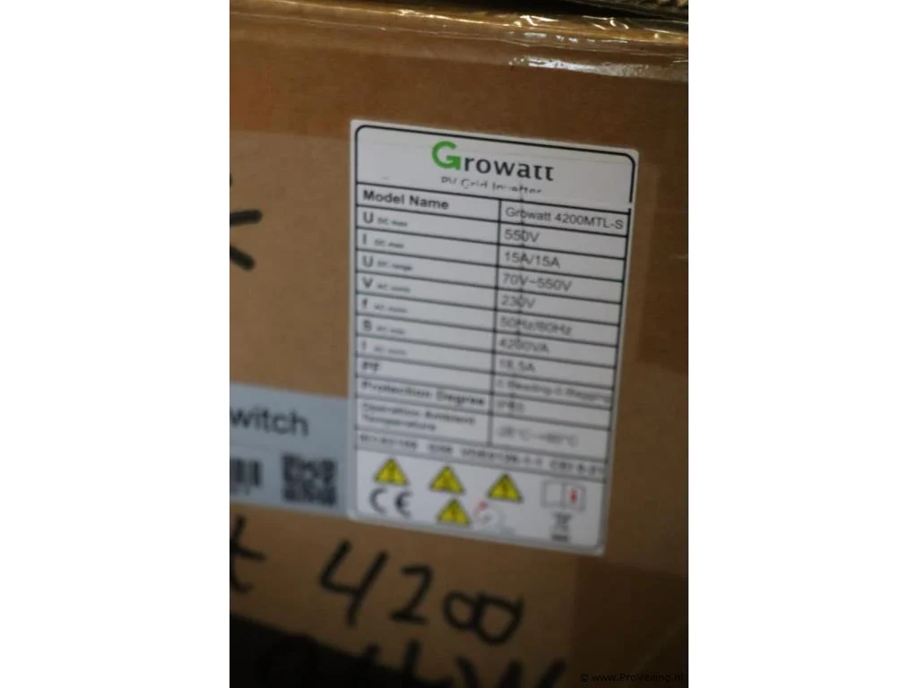 PV-inverter: merk Growatt; model 4200MTL-S; zie afbeeldingen.