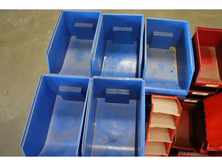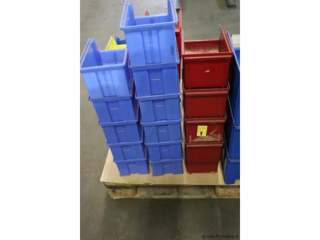 Partij (lege) magazijnbakken, diverse kleuren