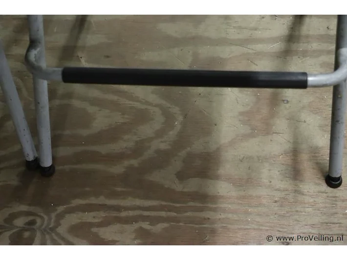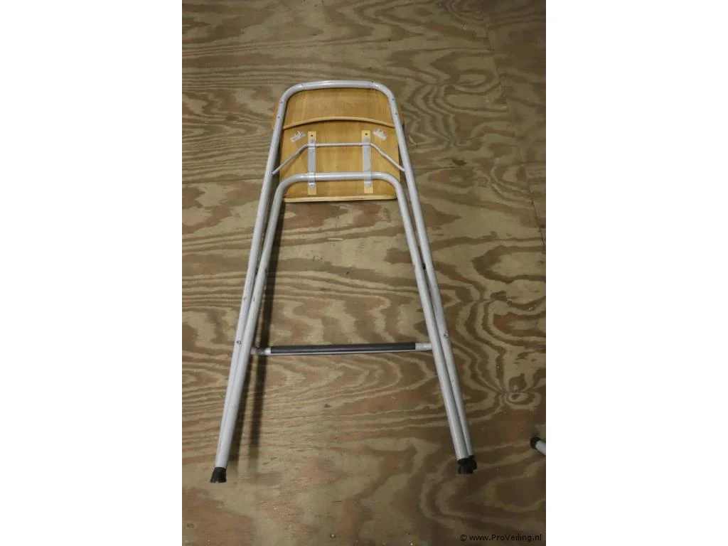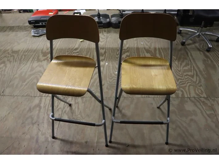 Hoge inklapbare stoelen met voetensteun; afmetingen ca. 33x38x106cm; zithoogte ca. 77cm; aantal 2 stuks.