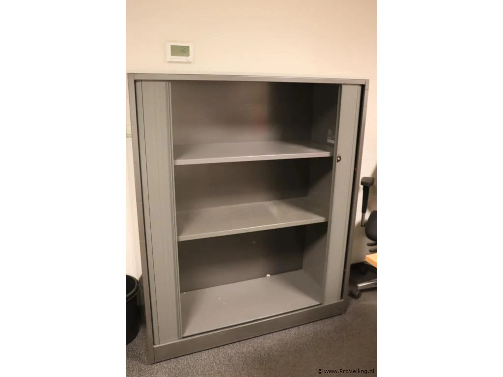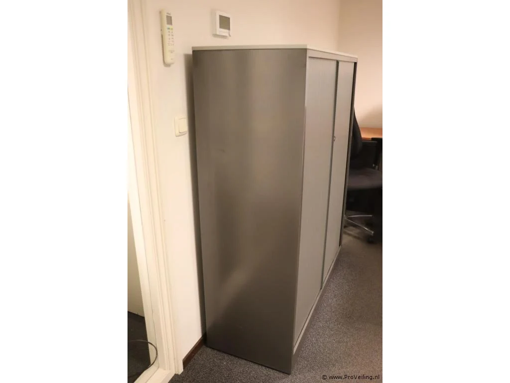 Jalouziedeurkast: merk Ahrend; afmetingen ca. 120x40x144cm.