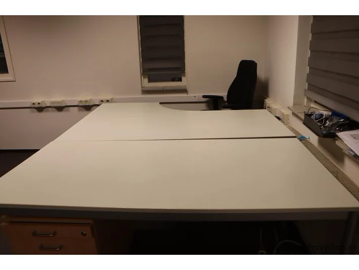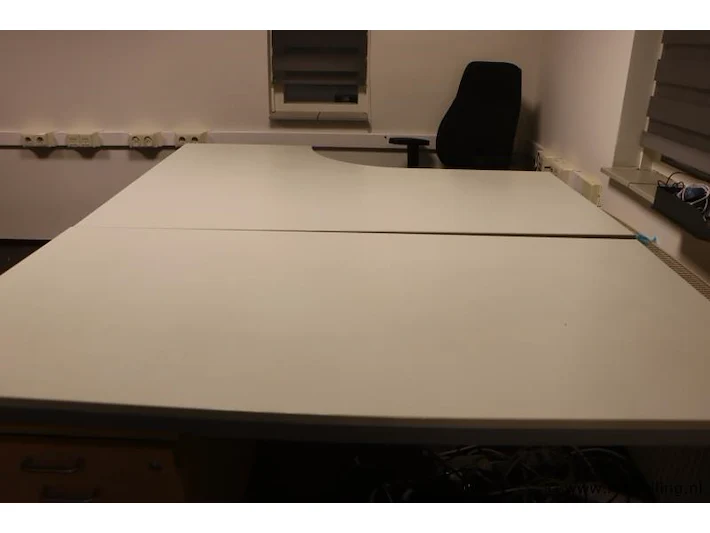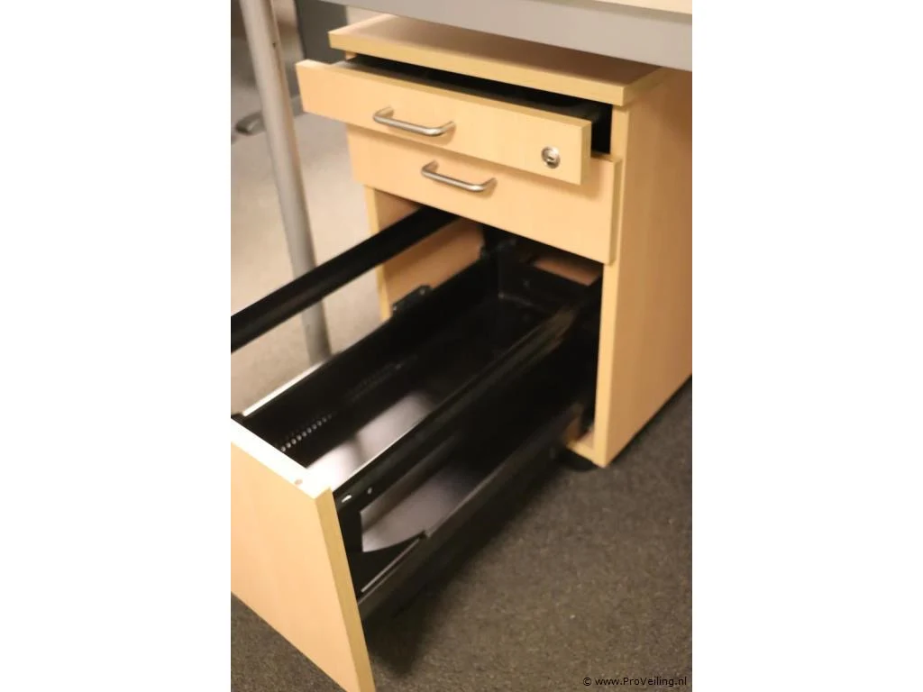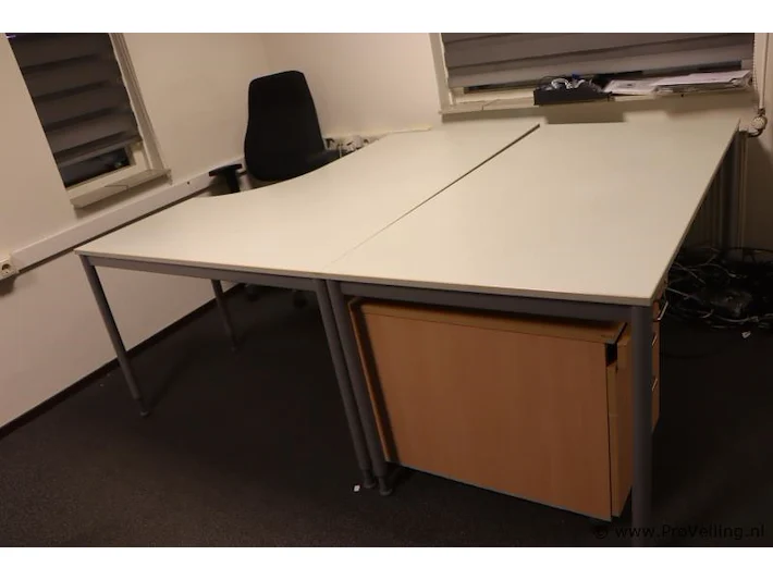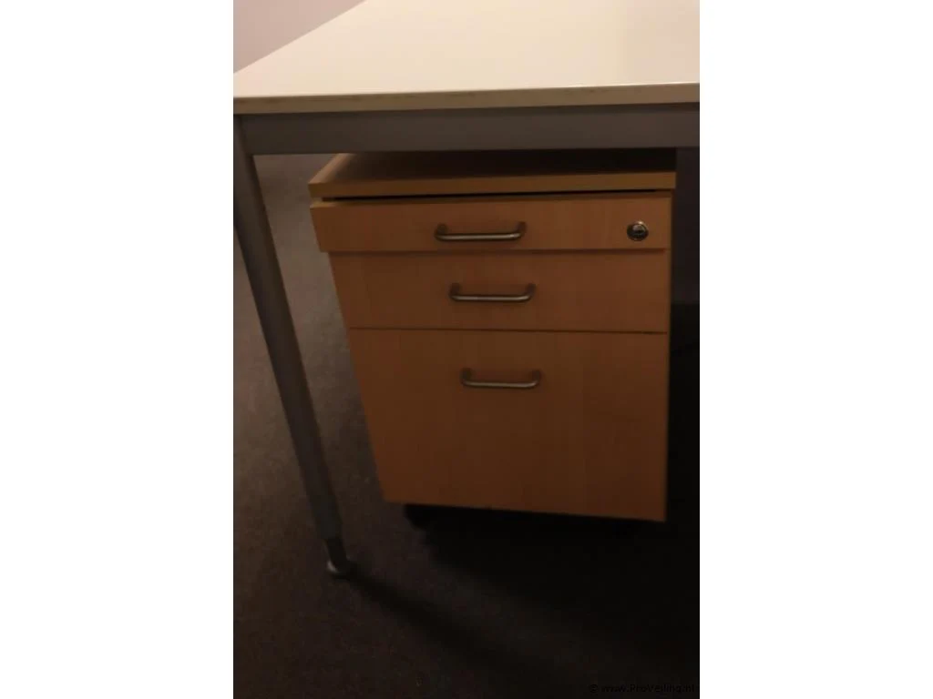 Bureautafels, in hoogte verstelbaar; afmetingen ca. 160x80-120x74cm; aantal 2 stuks; incl. ladekast; zie afbeeldingen.