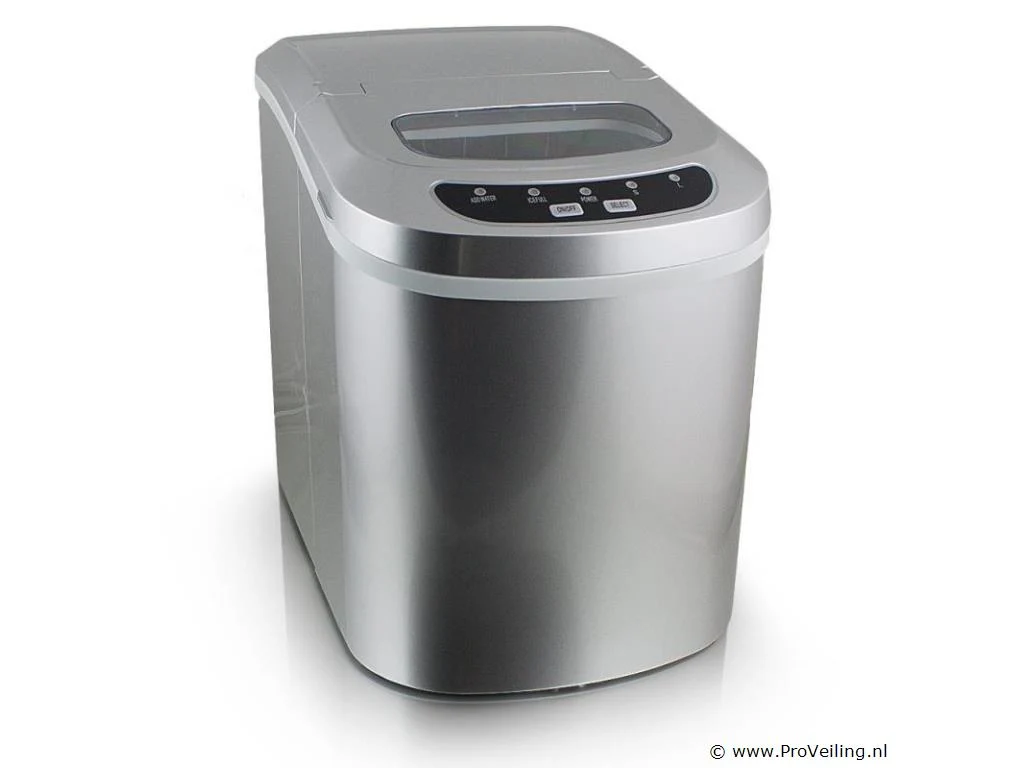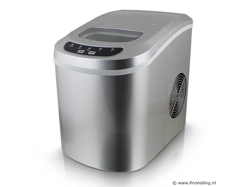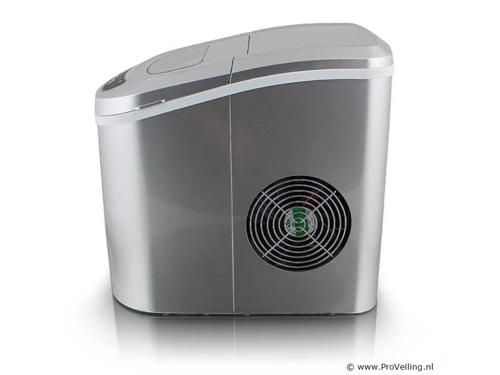 Info: gekoelde opslagbak voor ijsblokjes ca. 6-13 minuten voor een lading ijsblokjes IJs dagelijkse output 10-12kg 2 selecteerbare ijsblokjesmaten Indicatielampje en signaaltoon Hoogwaardig compressorgeluidsniveau (30db) GS getest Technische specificaties: Afmetingen: 350 mm x 250 mm x 325 mm (L/B/H) Watertank: 2,2 liter Gewicht: 7,85 kg Zilver Capaciteit: 0,8 kg ijs Dagelijkse productie: 10 - 12 kg ijs Vermogen: 220-240 volt 50Hz/120 watt Leveringsomvang: 1x ijsblokjesmachine 1x ijsblokjesschep 1x gebruiksaanwijzing