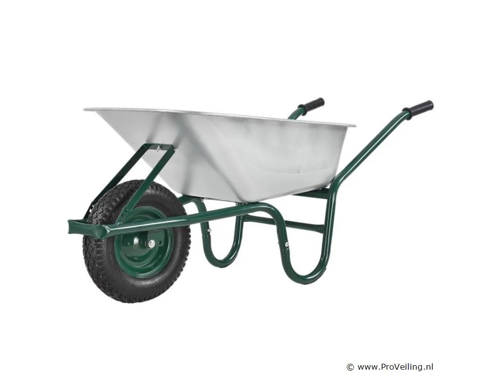 De veelzijdige tuinkruiwagen met gegalvaniseerde kuip en luchtbanden is een onmisbare transporthulp. Het is ideaal voor het gemakkelijk verwijderen van stortgoed in de tuin, stal of op de bouwplaats. Met zijn 100 liter kuip biedt hij voldoende ruimte voor allerlei soorten bulkgoederen: of het nu gaat om het snoeien van heggen, het planten van groenten, het leggen van tegels of het opruimen van de stal - de eenwielerwagen maakt stal-, renovatie- en tuinwerk gemakkelijker voor u. Technische specificaties: Materiaal bak: verzinkt plaatstaal, 0,7 mm dik Materiaal frame: staalbuis, 1,2 mm dik Materiaal handgrepen: kunststof Volume: 100L Leeg gewicht: 12,4 kg Maximale belasting: 210 kg Werkdruk banden: 2 bar Kleuren: zilver, donkergroen, zwart Afmetingen (ongeveer): Breedte: 59cm Lengte: 141cm Hoogte: 62cm Wiel: Ø 40 cm Leveringsomvang: 1 x kruiwagen 1 x instructie
