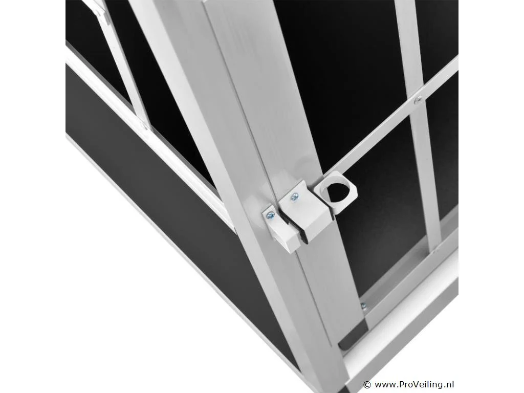 Voor het veilig vervoeren van kleine honden De rit naar de dierenarts of op vakantie wordt kinderspel voor jou en je trouwe viervoeter. Met de aluminium hondentransportbox M vervoer je kleine honden comfortabel en veilig. Plaats de doos in de kofferbak of maak hem vast op de achterbank van uw auto. De kleine pelsneuzen zullen zich dankzij de goede ventilatie meteen thuis voelen. Bovendien kunnen u en uw hond elkaar van alle kanten duidelijk zien, zodat u altijd zeker weet hoe uw huisdier zich voelt. Technische specificaties: Materiaal: Aluminium / MDF panelen Geschikt voor: puppies, kleine honden Beoogd gebruik: autoritten, vakanties, reizen Plaats van gebruik: kofferbak, achterbank Kleur: zwart/zilver Aantal deuren: 1 Afmetingen (ongeveer): Hoogte: 51 cm Vloeroppervlak: 54 × 69 cm Plafondpaneel: 45 × 45,5 cm Kantelhoek voorzijde: ongeveer 65 graden Kantelhoek achter: ongeveer 90 graden Advies: Controleer voor bestelling of de maatvoering goed is.